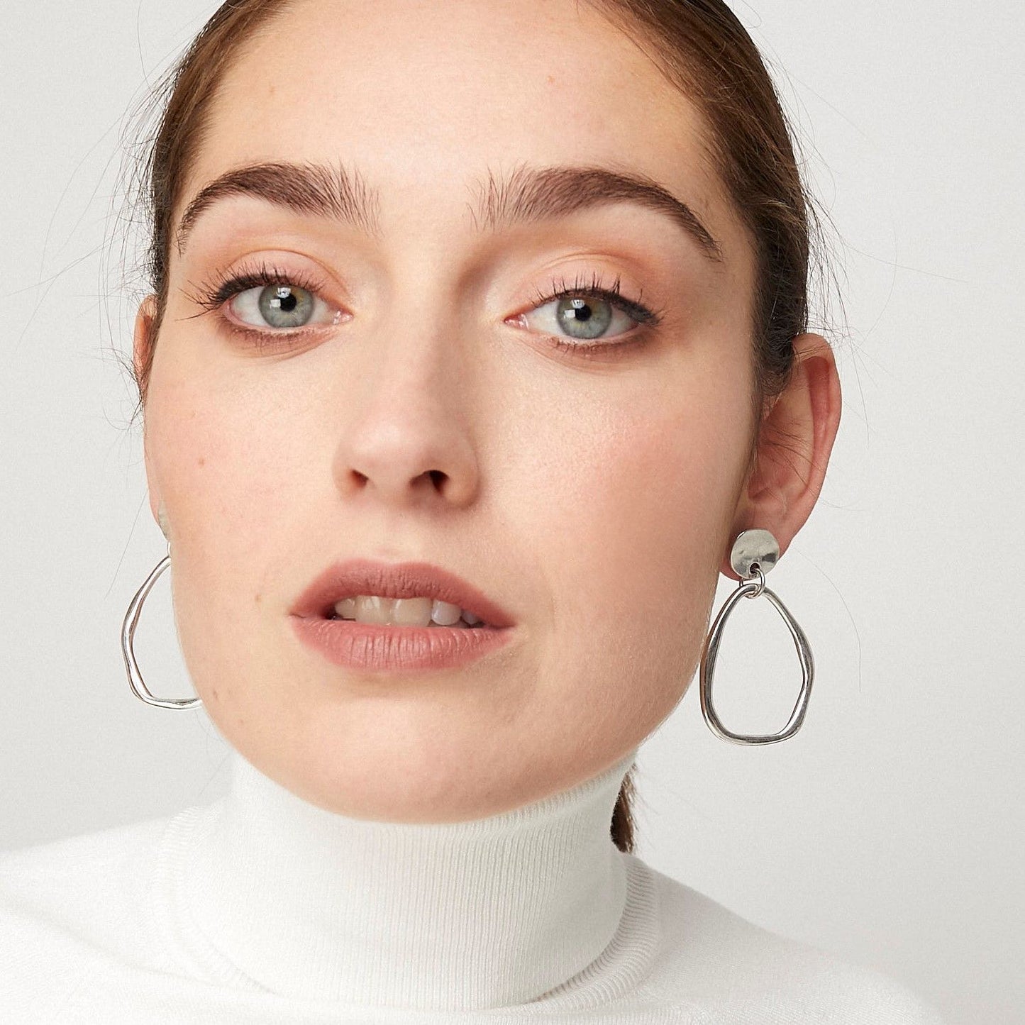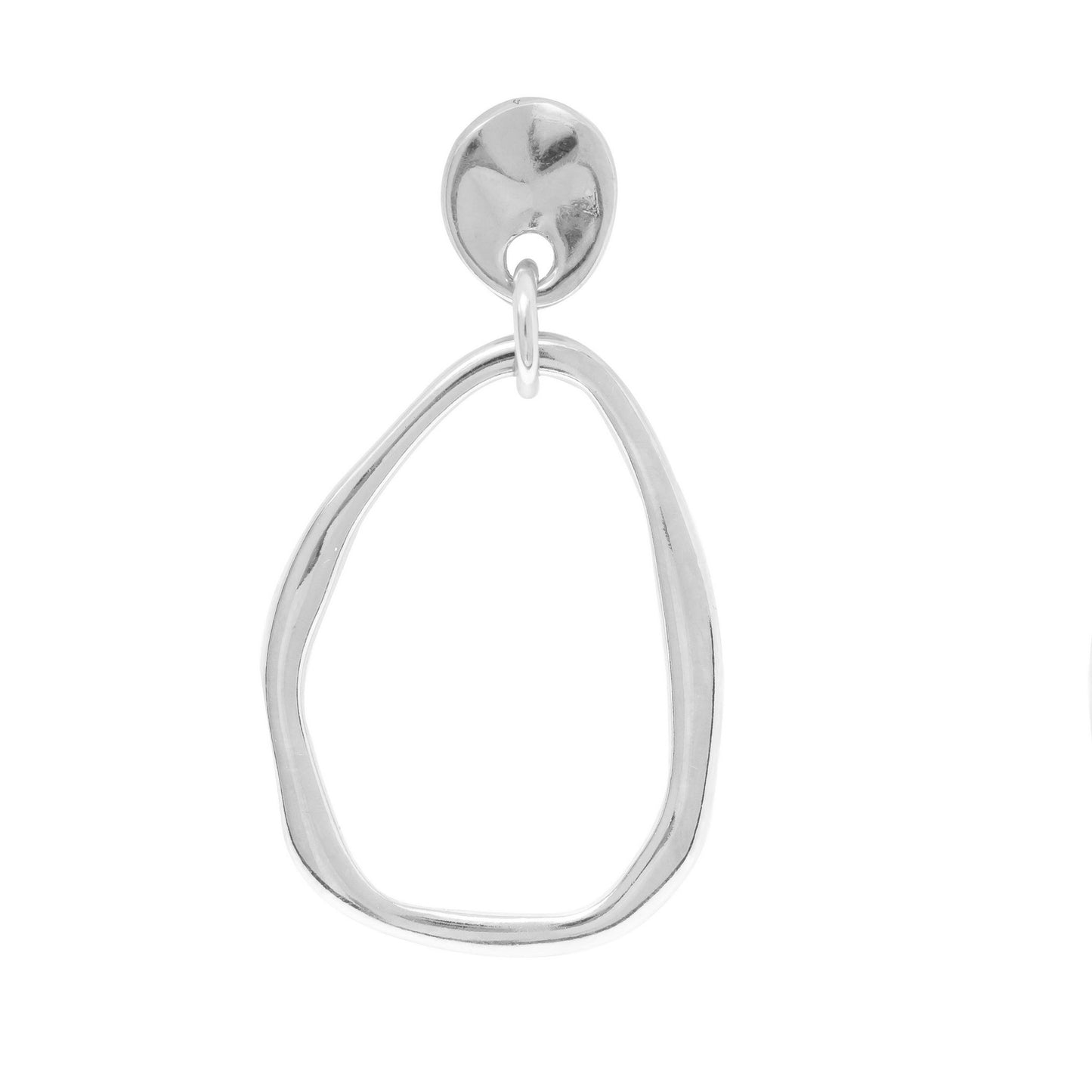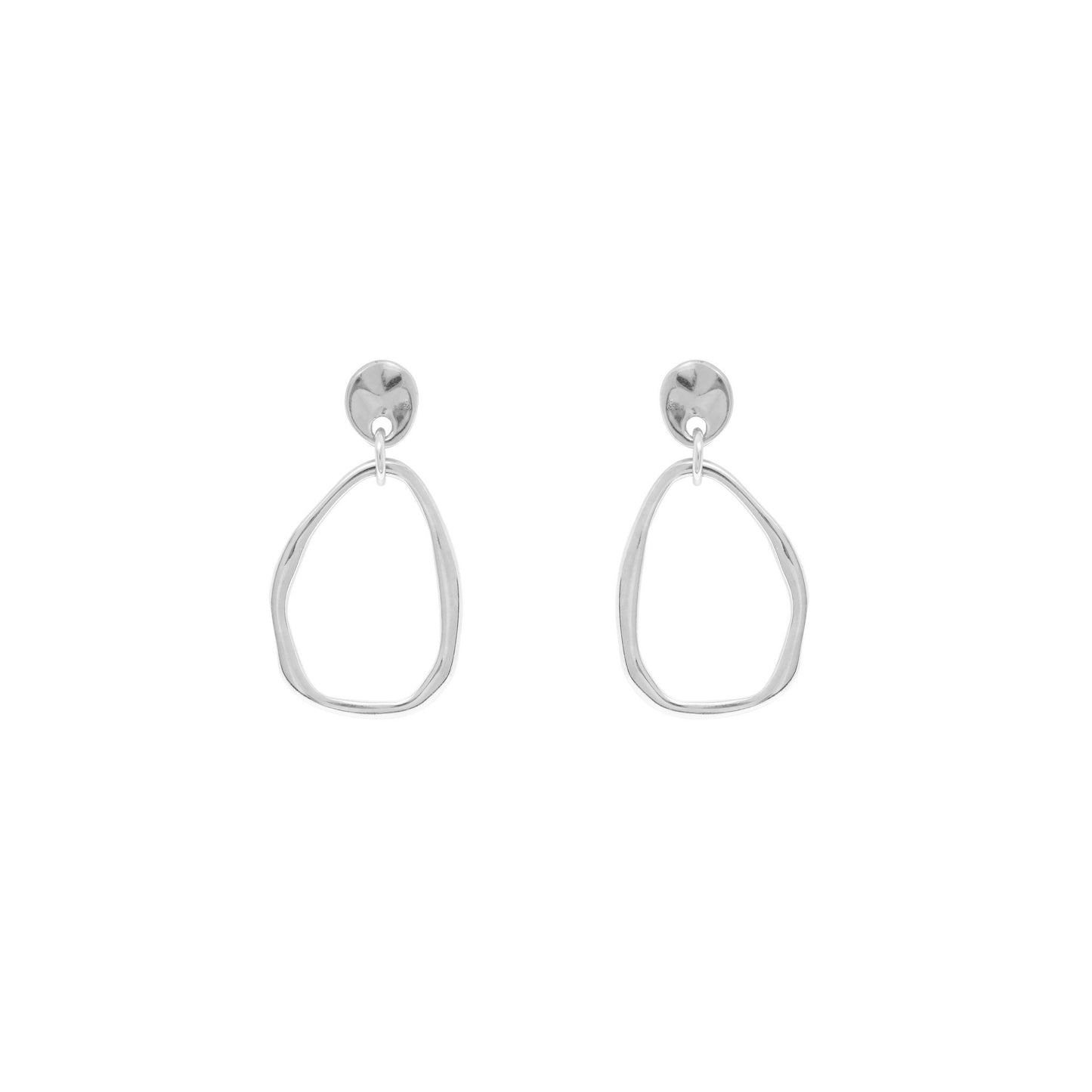 Stud earrings with a hanging irregular circle piece.
