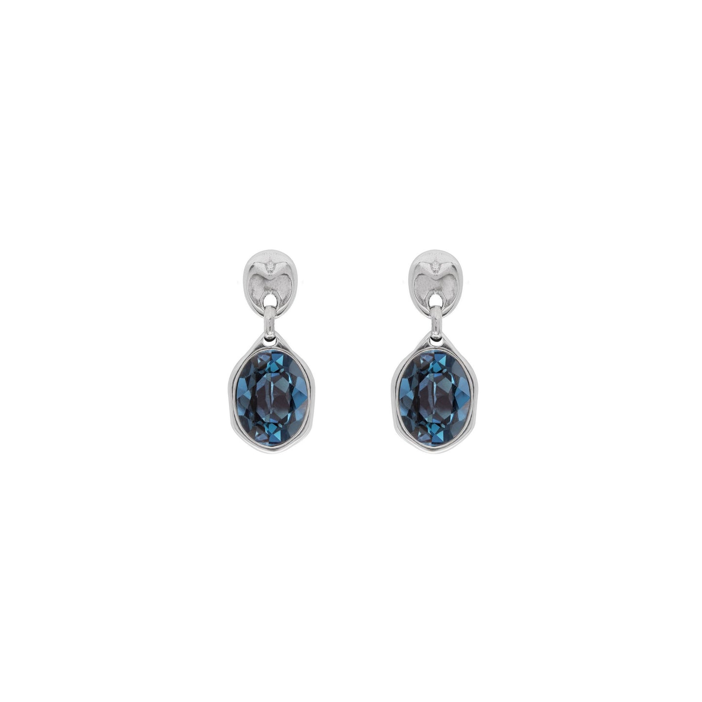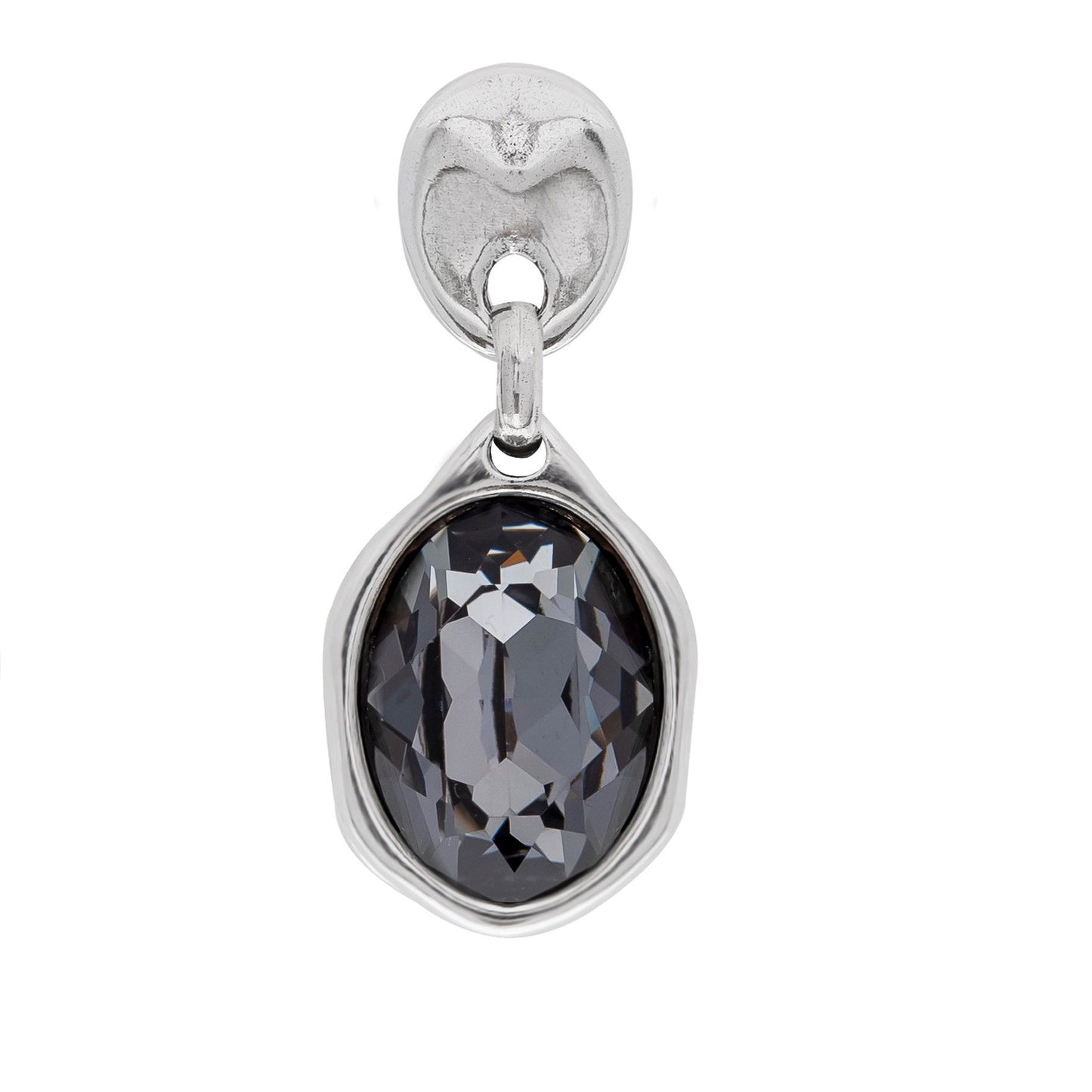 Stud earrings with hanging irregular-oval Swarovski������ crystal.