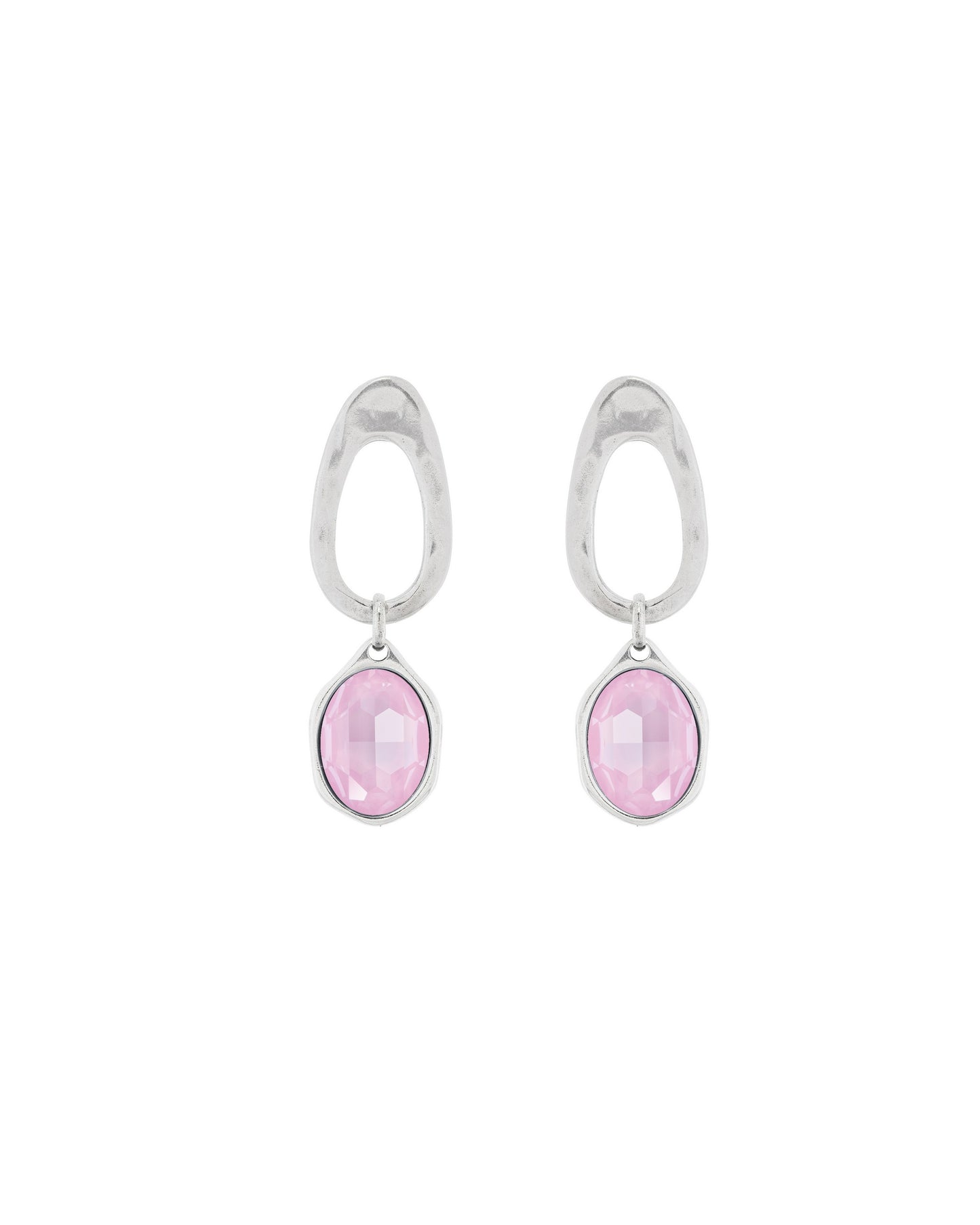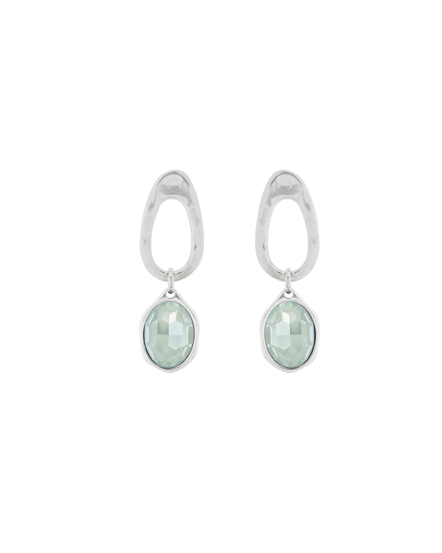 Stud earrings made with an irregular-oval piece with an oval Swarovski������ crystal charm attached to it with a ring.