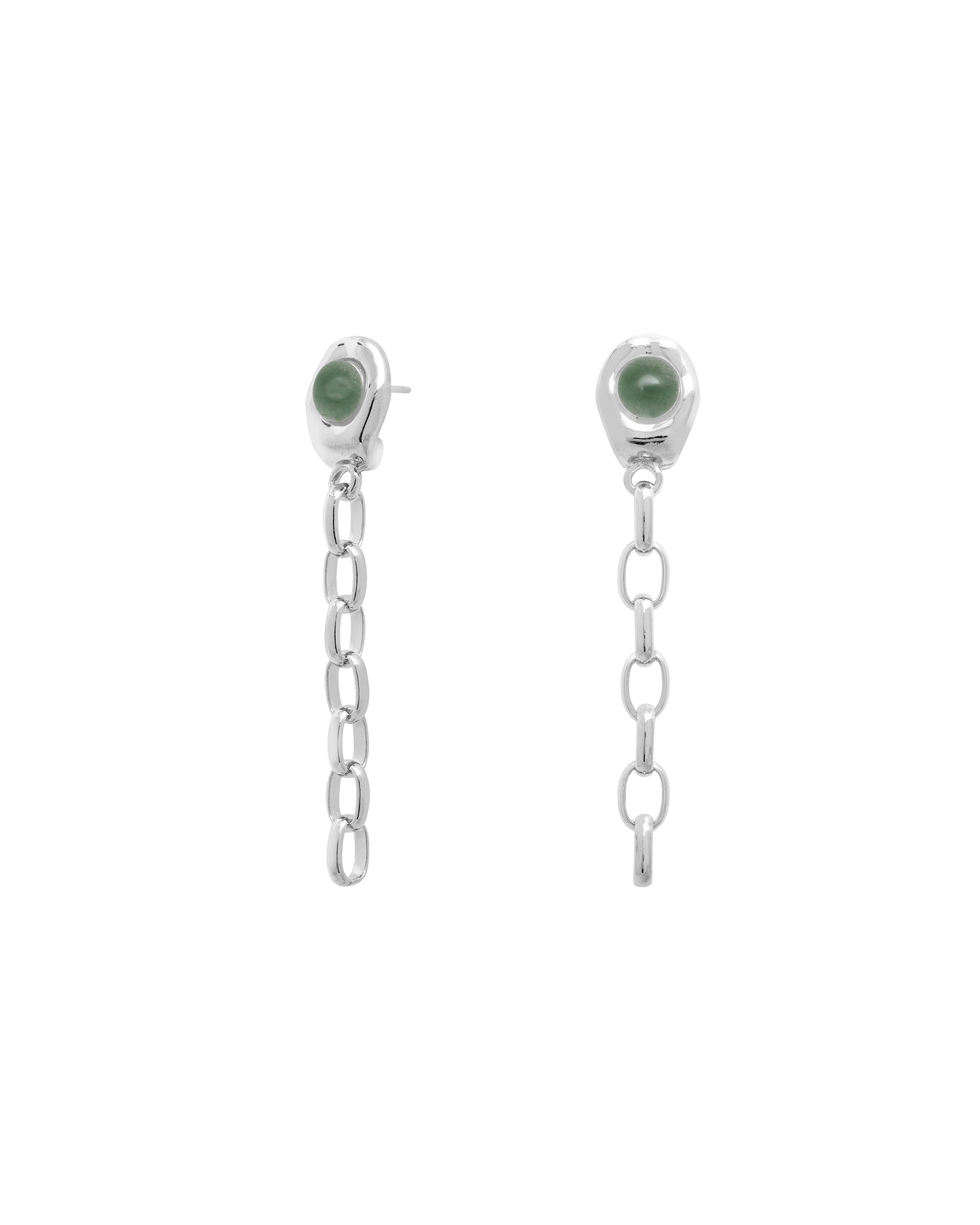 Long chain earrings with a small round gemstone at the base of the earring.