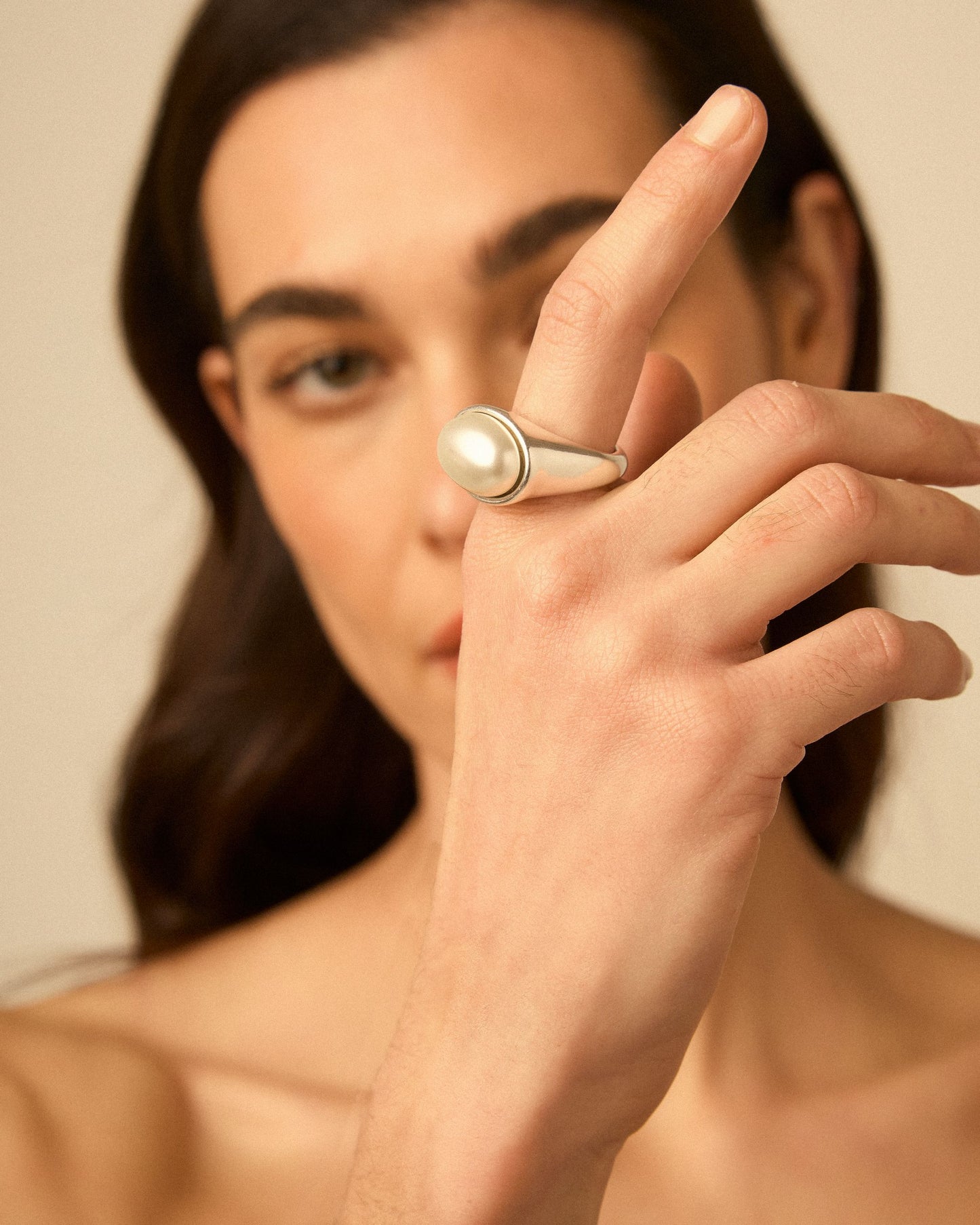 Oval ring with a pearl.