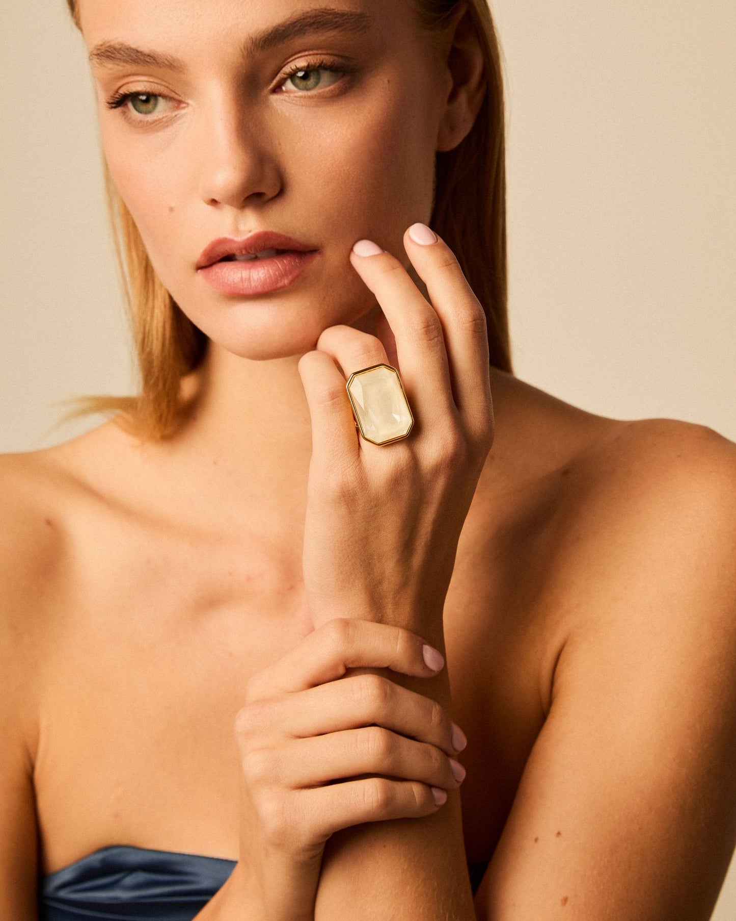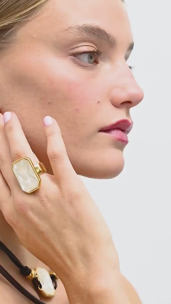 Rectangle shaped ring with a Swarovski® crystal.