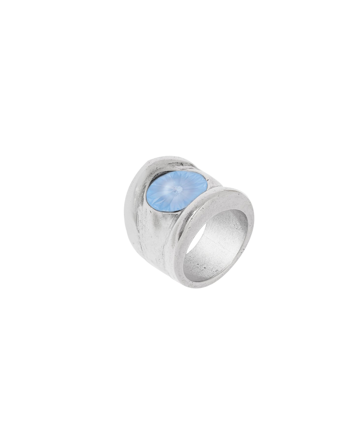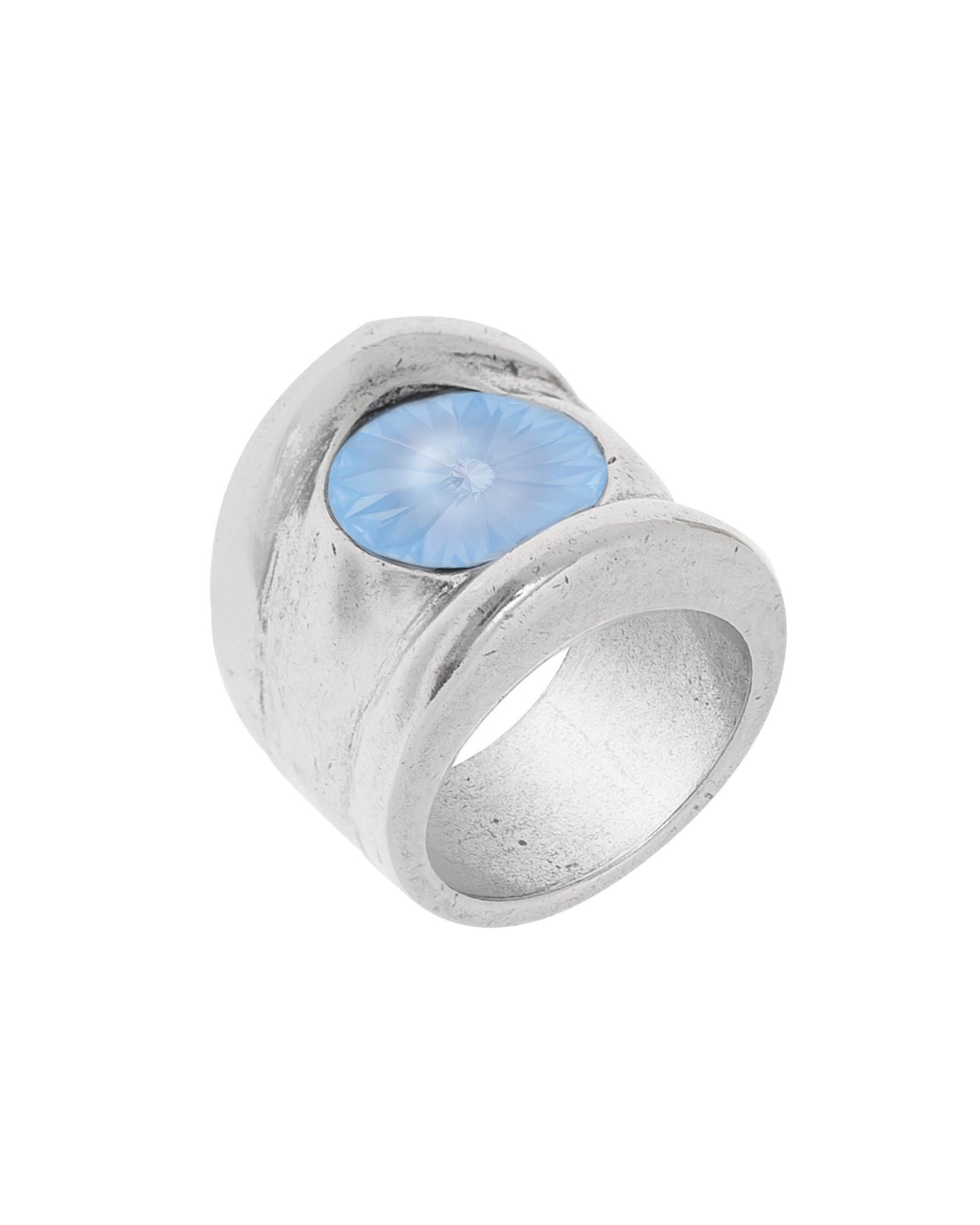 Wide ring with a circle Swarovski������ crystal in the middle.