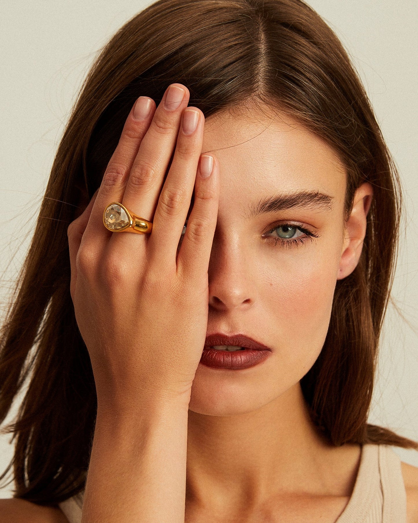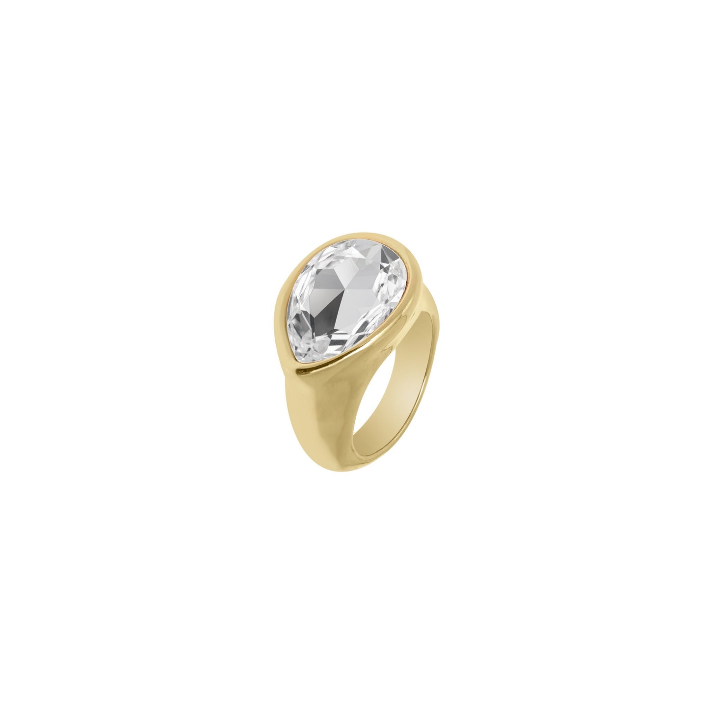 Anillo de tipo coktail con un cristal Swarovski® pequeño en forma de gota.
