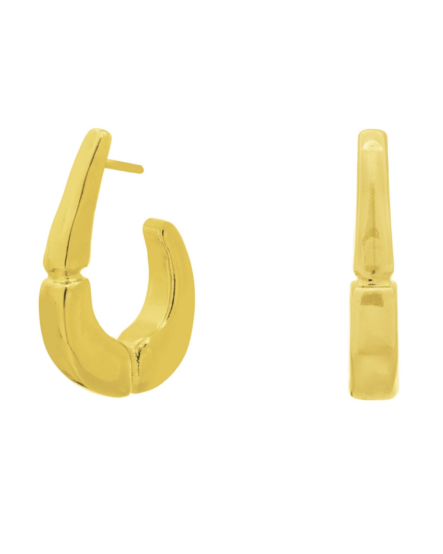 Pendientes de aro con una silueta escultórica y curvada, diseñados con una forma ligeramente abierta.