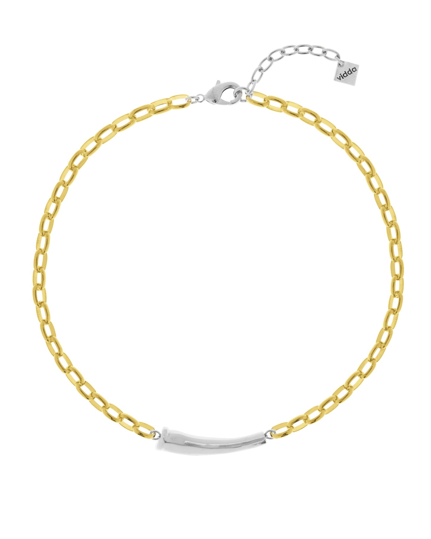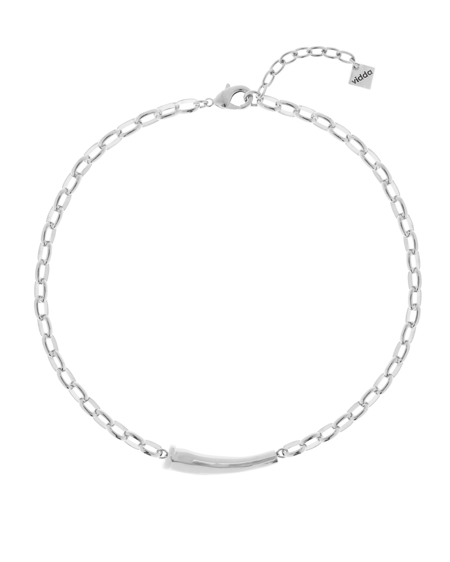 Collar corto de cadena con un elemento tubular curvado en el centro.