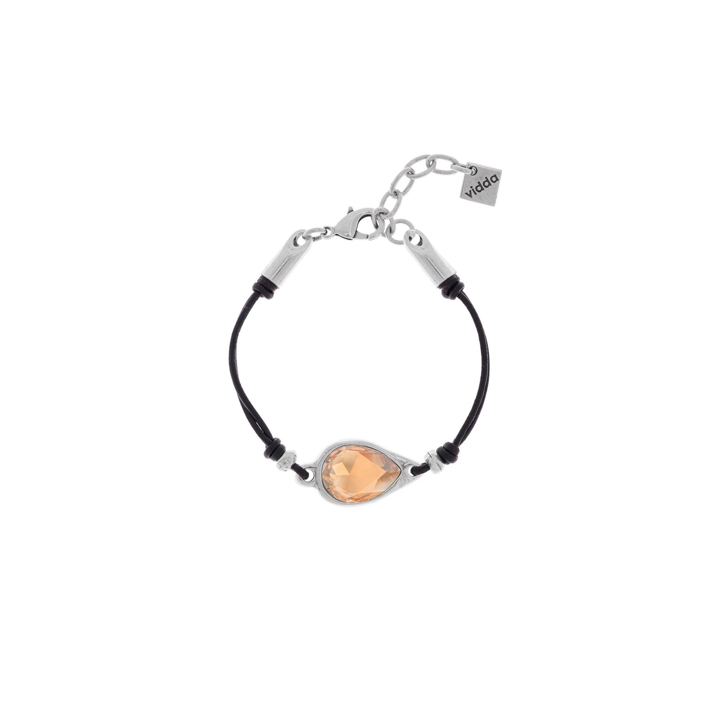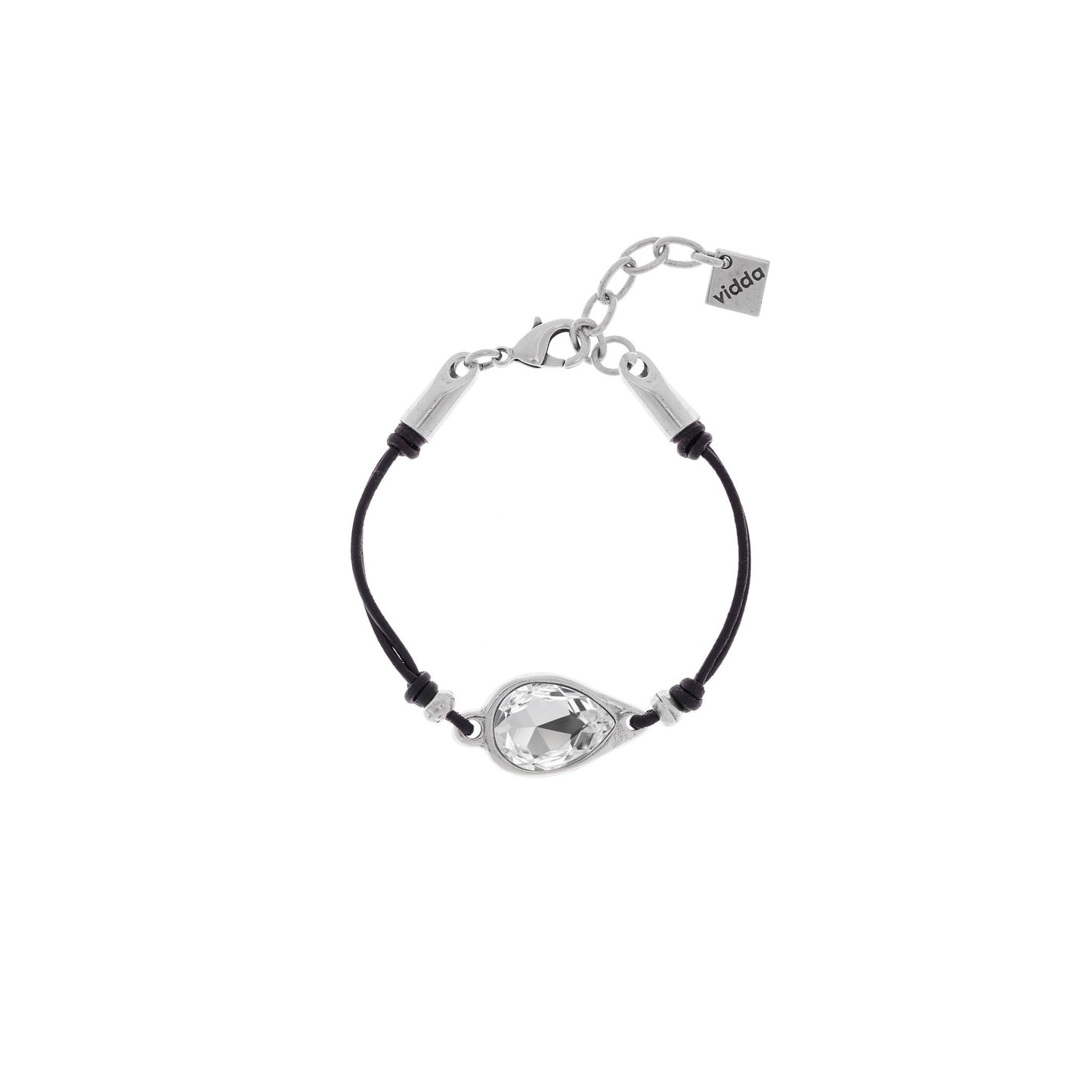 Precio regular $55.00Pulsera de cordón de cuero unido en el centro a partir de un pequeño conector en forma de gota con cristal Swarovski®.