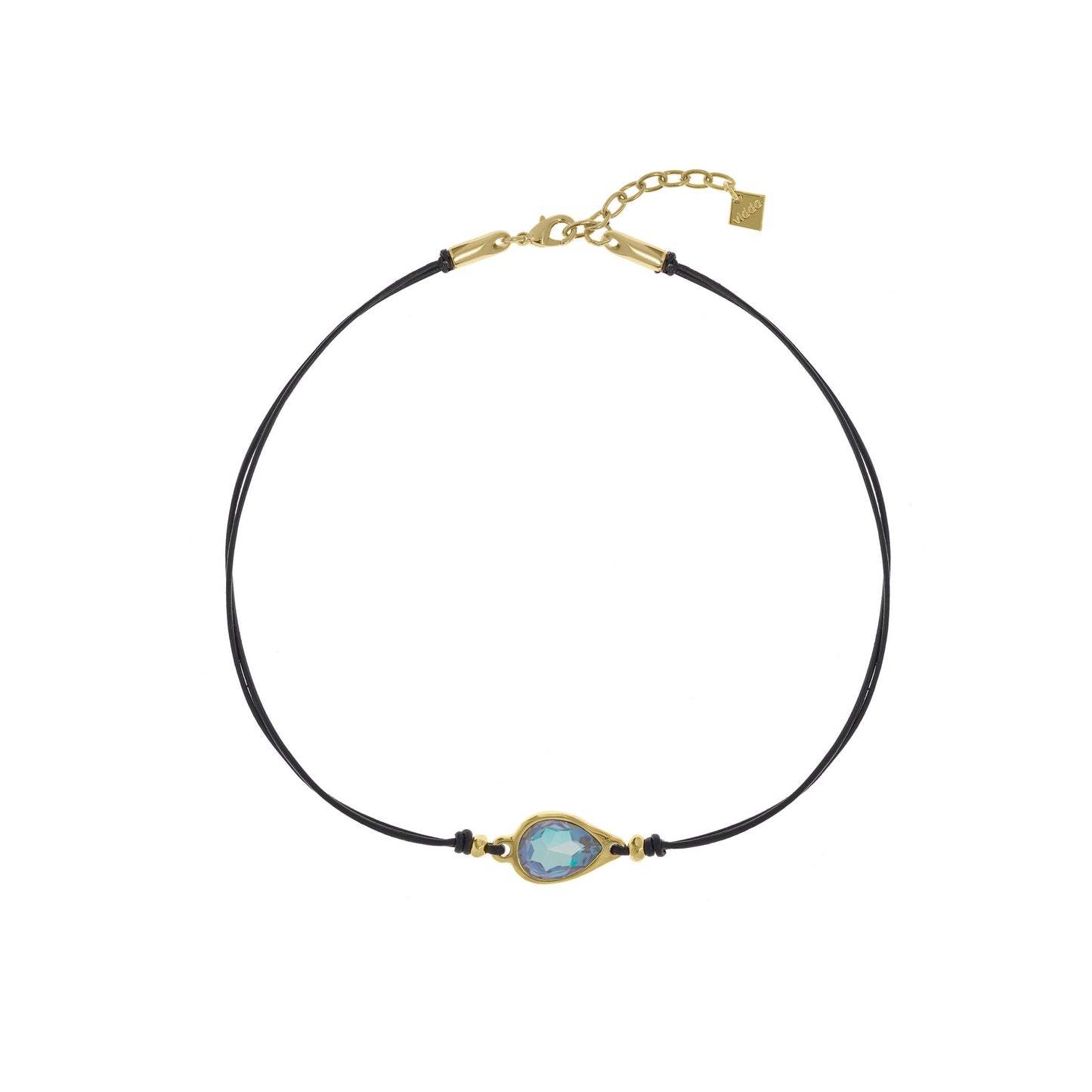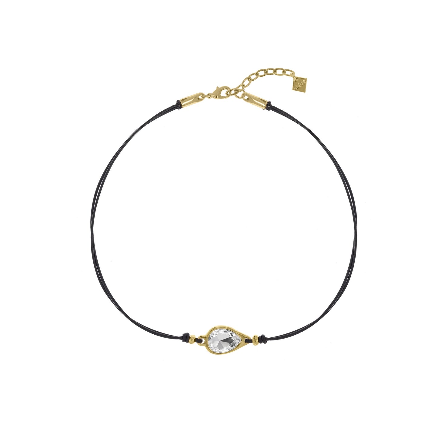 Precio regular $77.00Collar corto de cordón de cuero unido en el centro a partir de un pequeño conector en forma de gota con cristal Swarovski®.