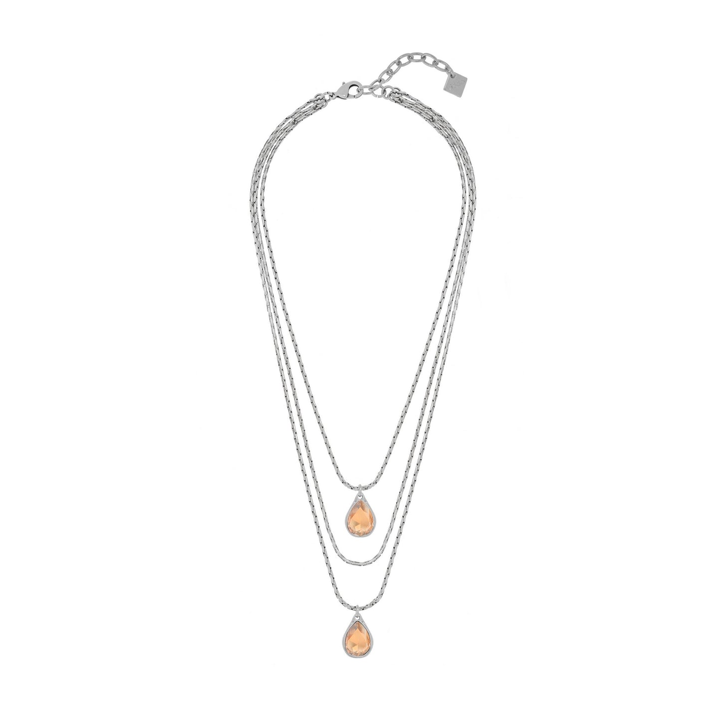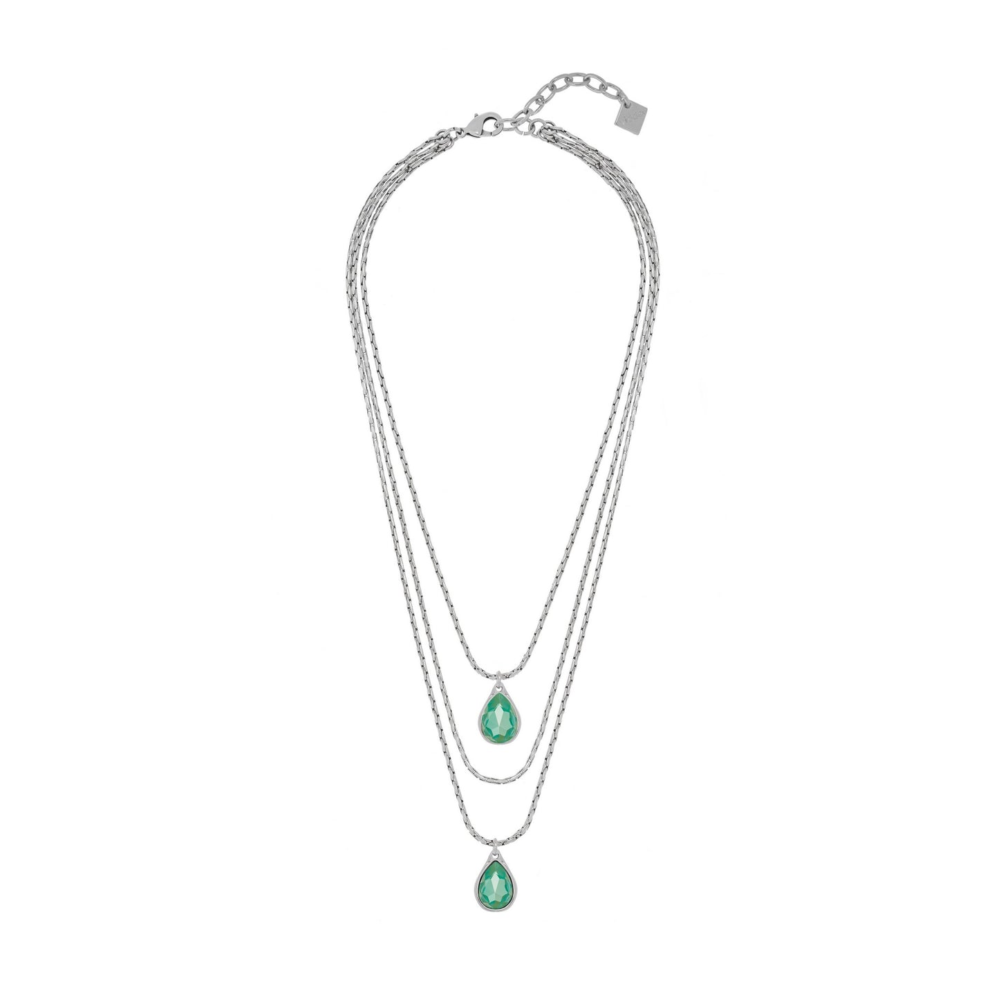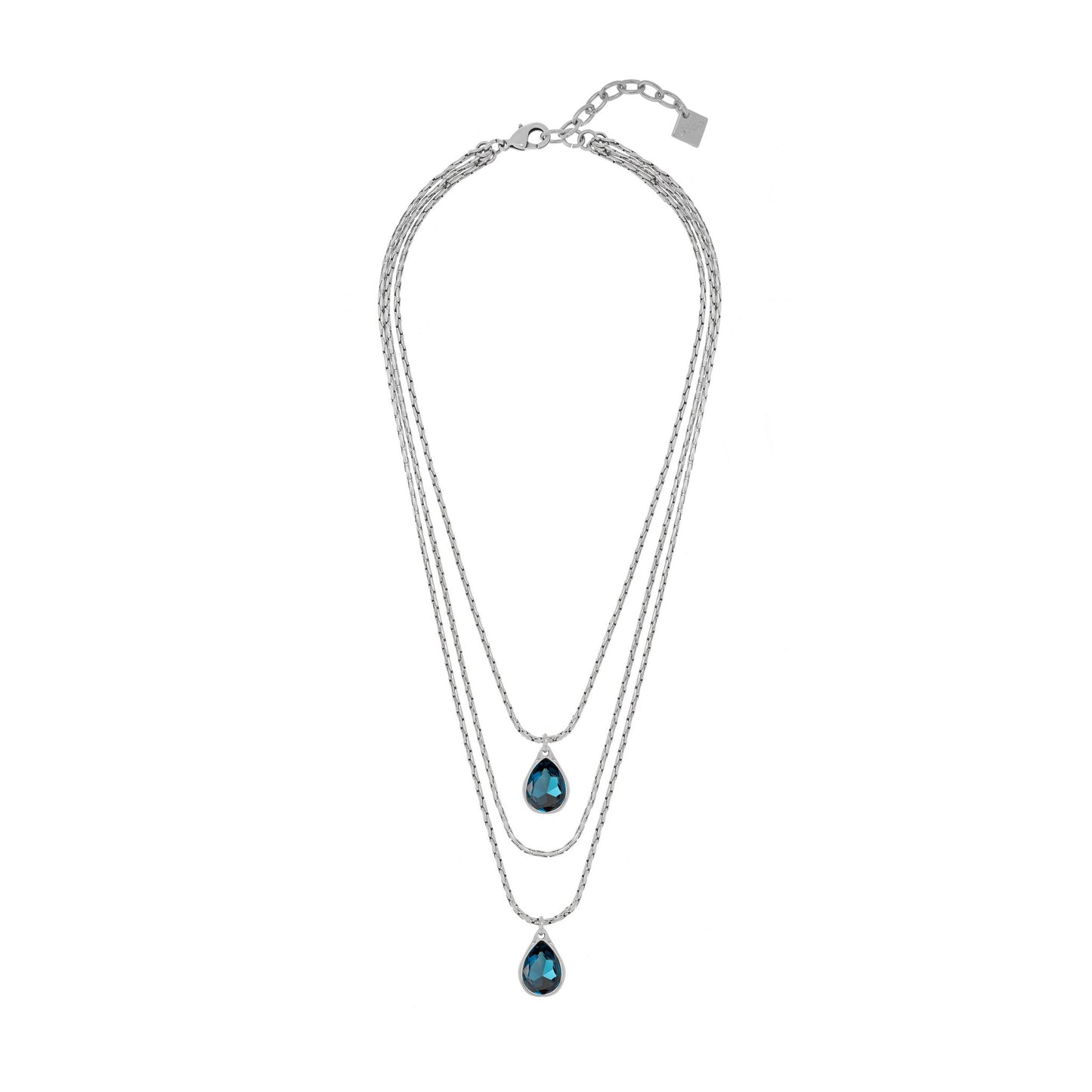 Collar de tres cadenas de diferentes larguras con un colgante pequeño en forma de gota con cristal Swarovski® en la más corta y en la más larga.