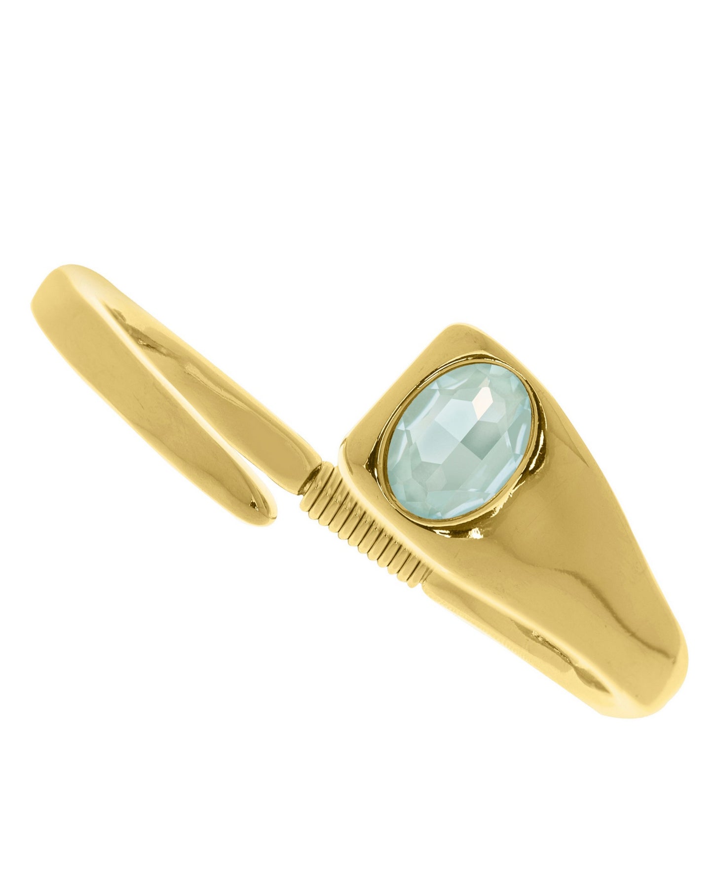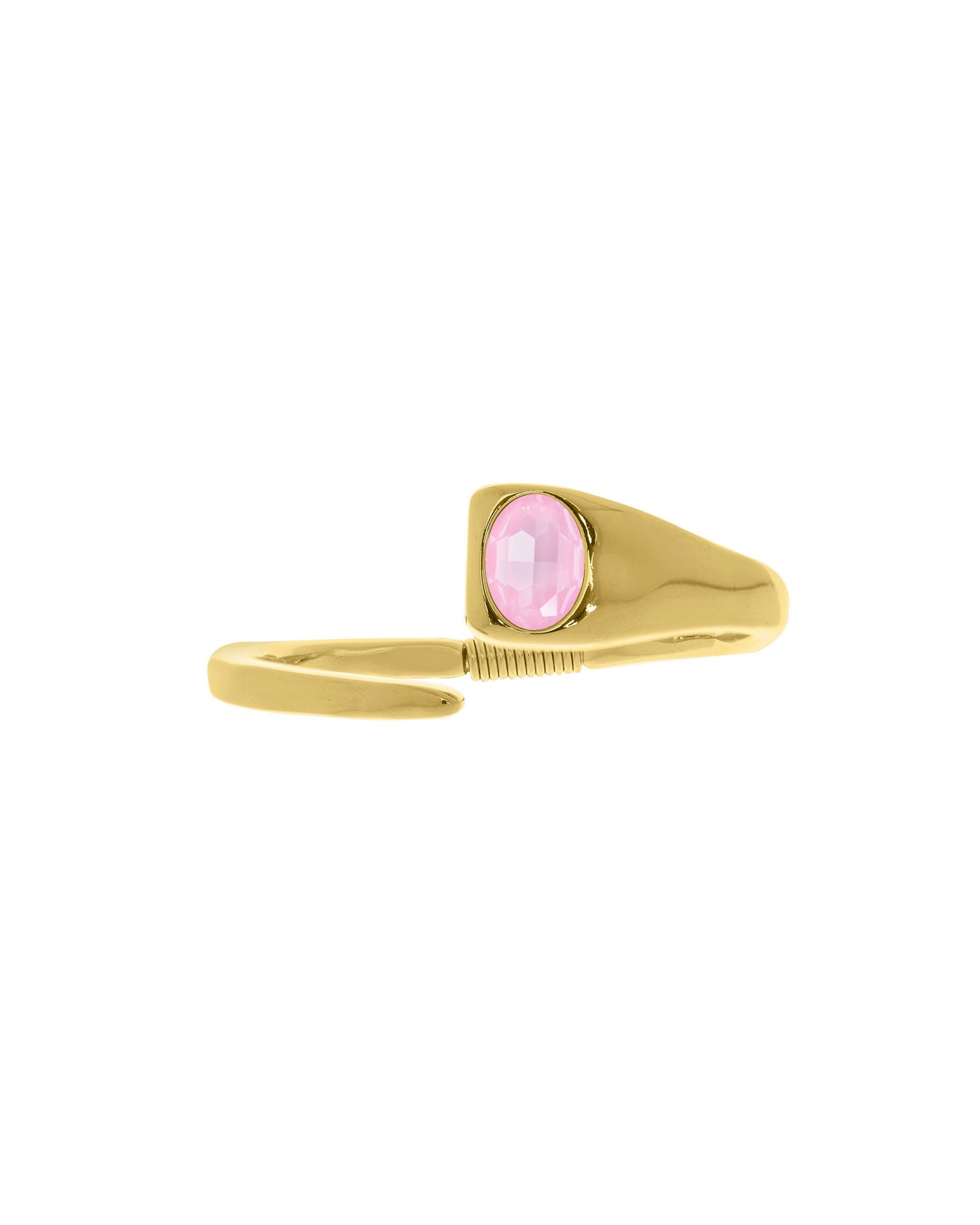 Pulsera rígida abierta. Uno de los extremos es ancho y plano con un cristal Swarovski® ovalado, y el otro extremo es delgado con la punta redondeada.