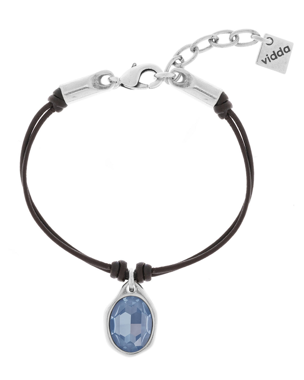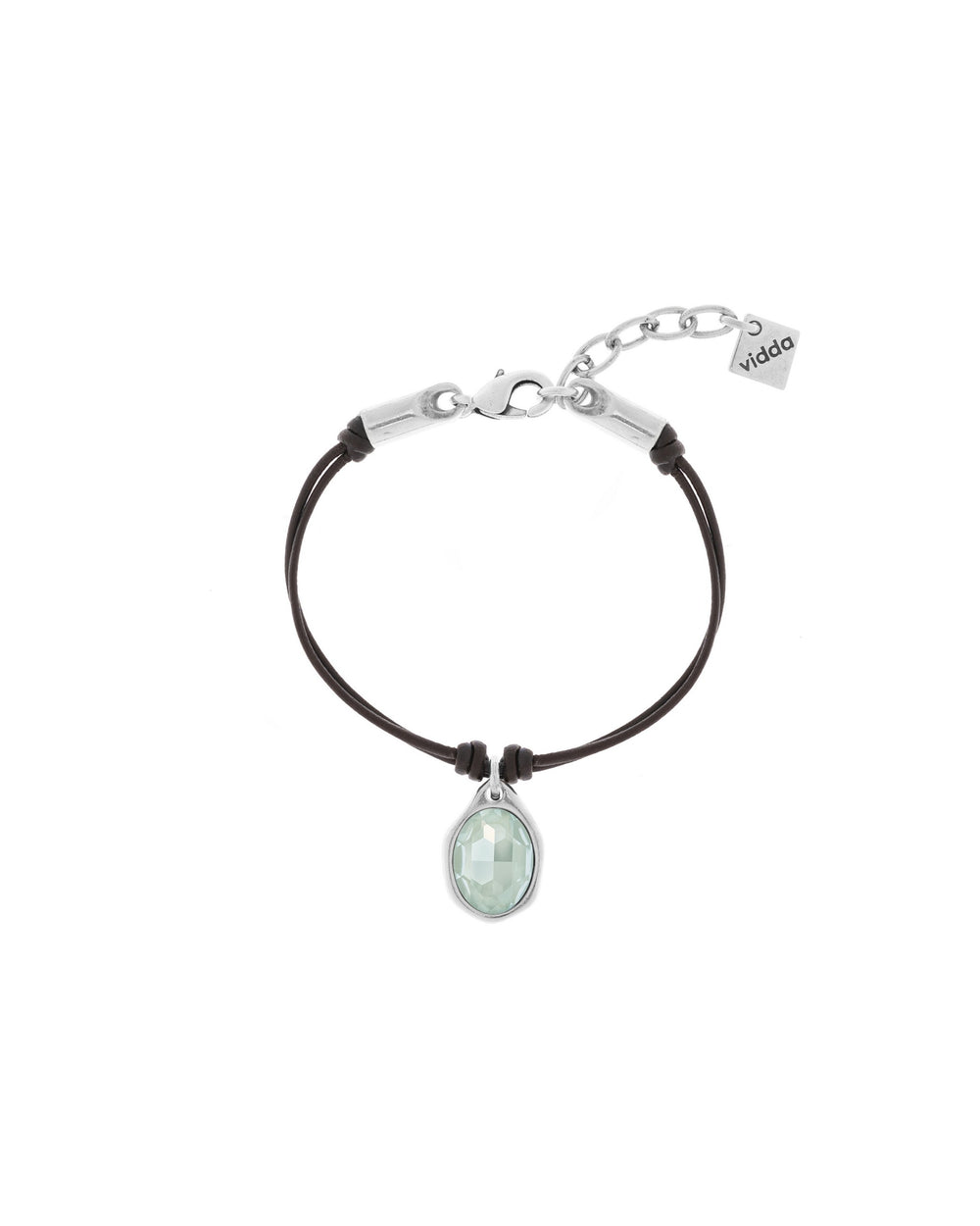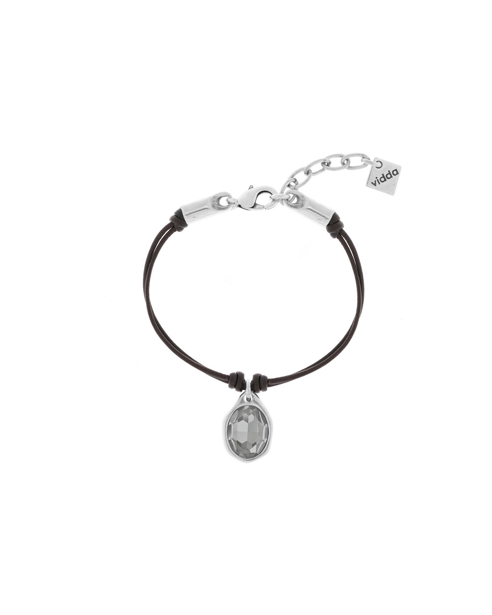 Pulsera de doble cordón de cuero con colgante ovalado con cristal Swarovski®.