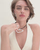 Collar corto de cordón de cuero grueso con un colgante asimétrico de forma orgánica.