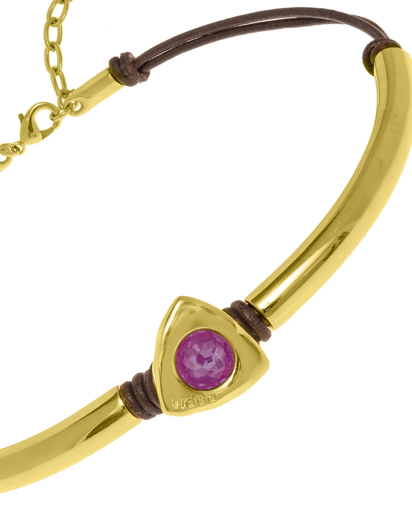 MATERIAL: Baño de Oro de 24k, cristales Swarovski® y cuero natural