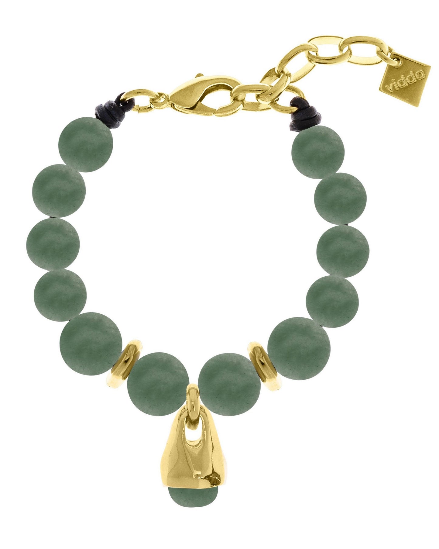 Pulsera de cordón de cuero elaborada con una combinación de cuentas de piedras semipreciosas y cuentas metálicas, con un gran colgante en forma de gota con una piedra semipreciosa en la punta.