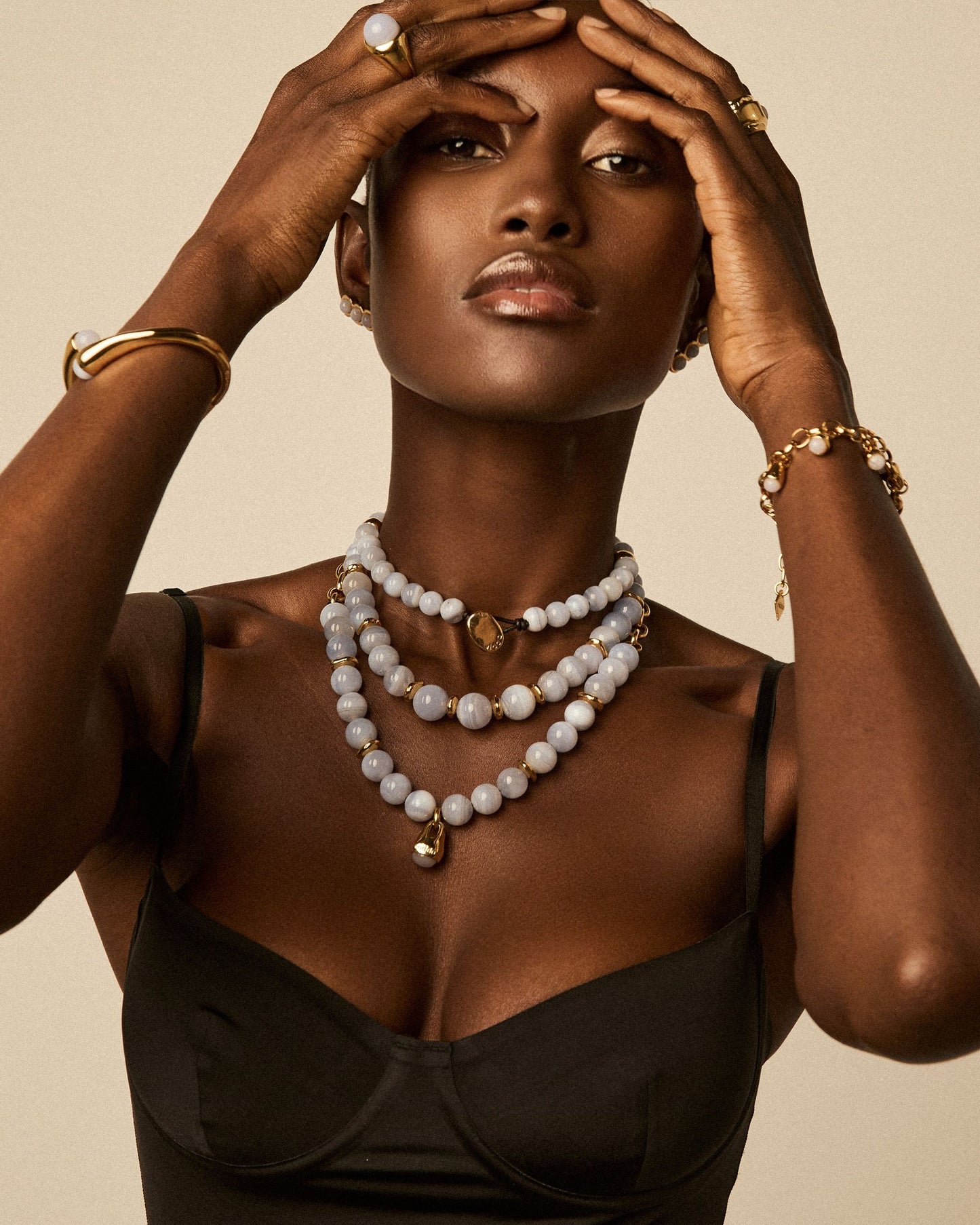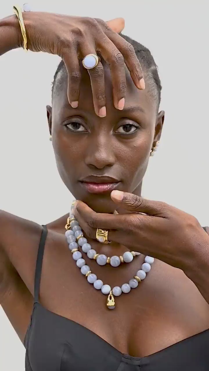 MATERIAL: Baño de Oro de 24k, piedras semipreciosas y cuero natural