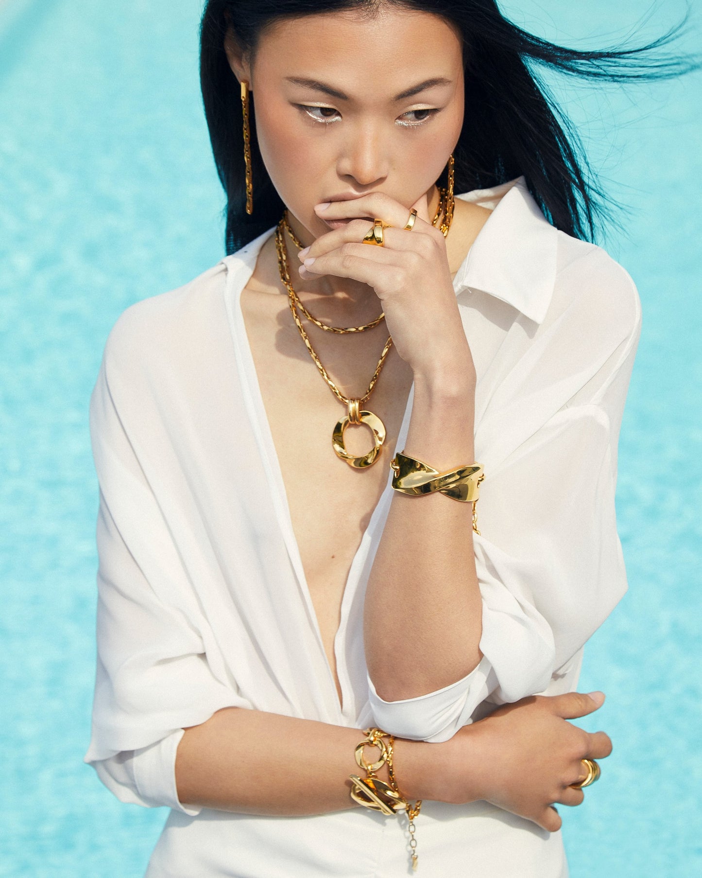 Pulsera de cadena con una pieza retorcida de metal en el centro.