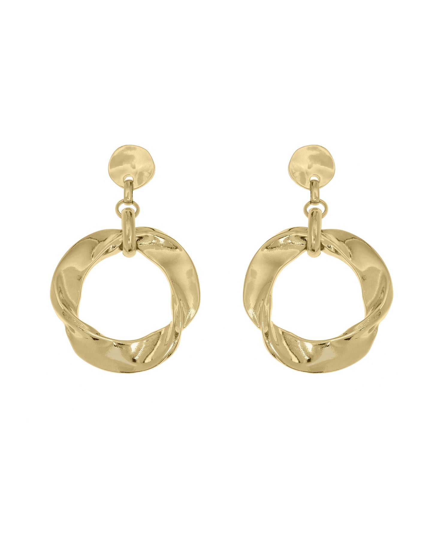 Pendientes con un colgante de pieza retorcida en forma circular cada una.