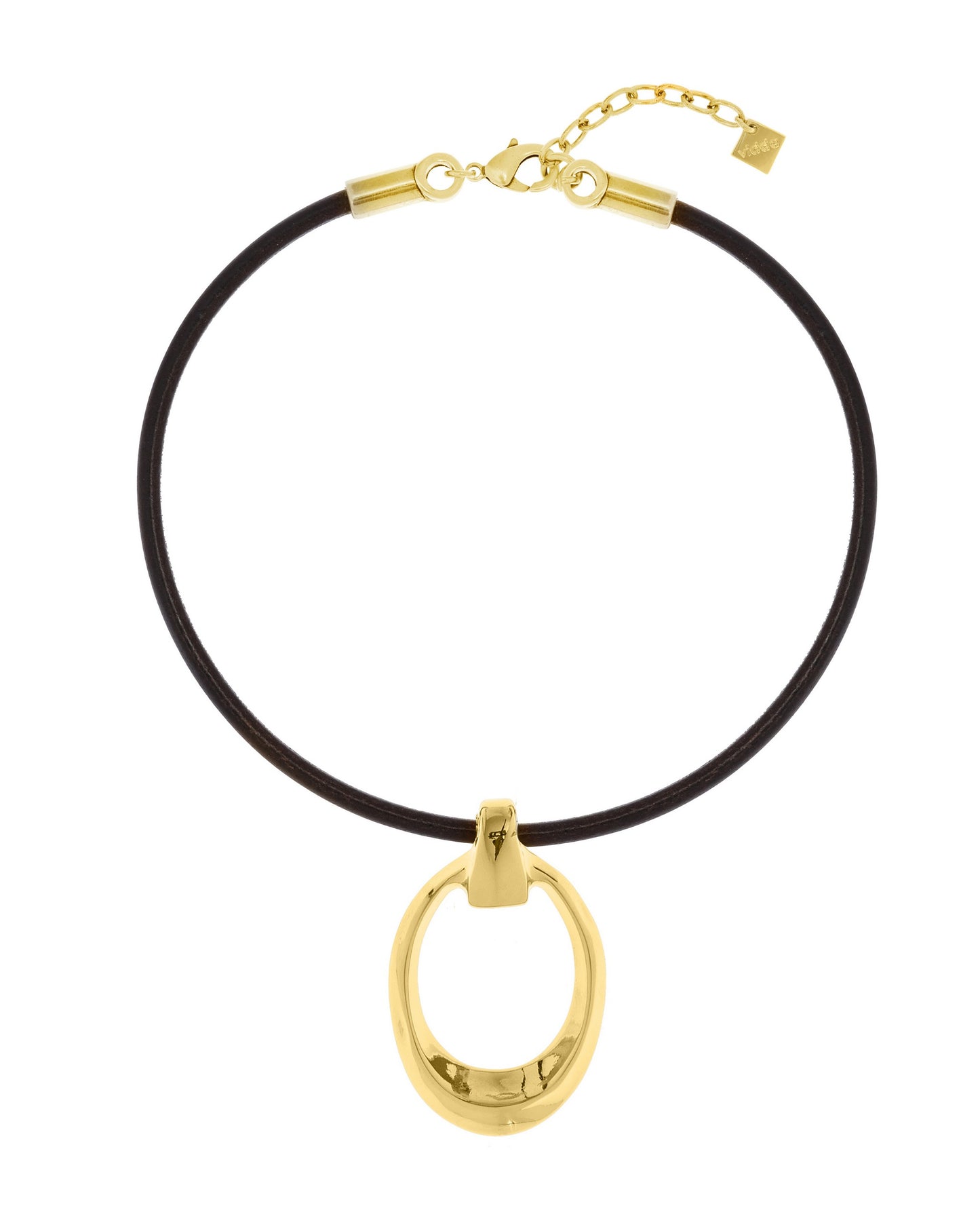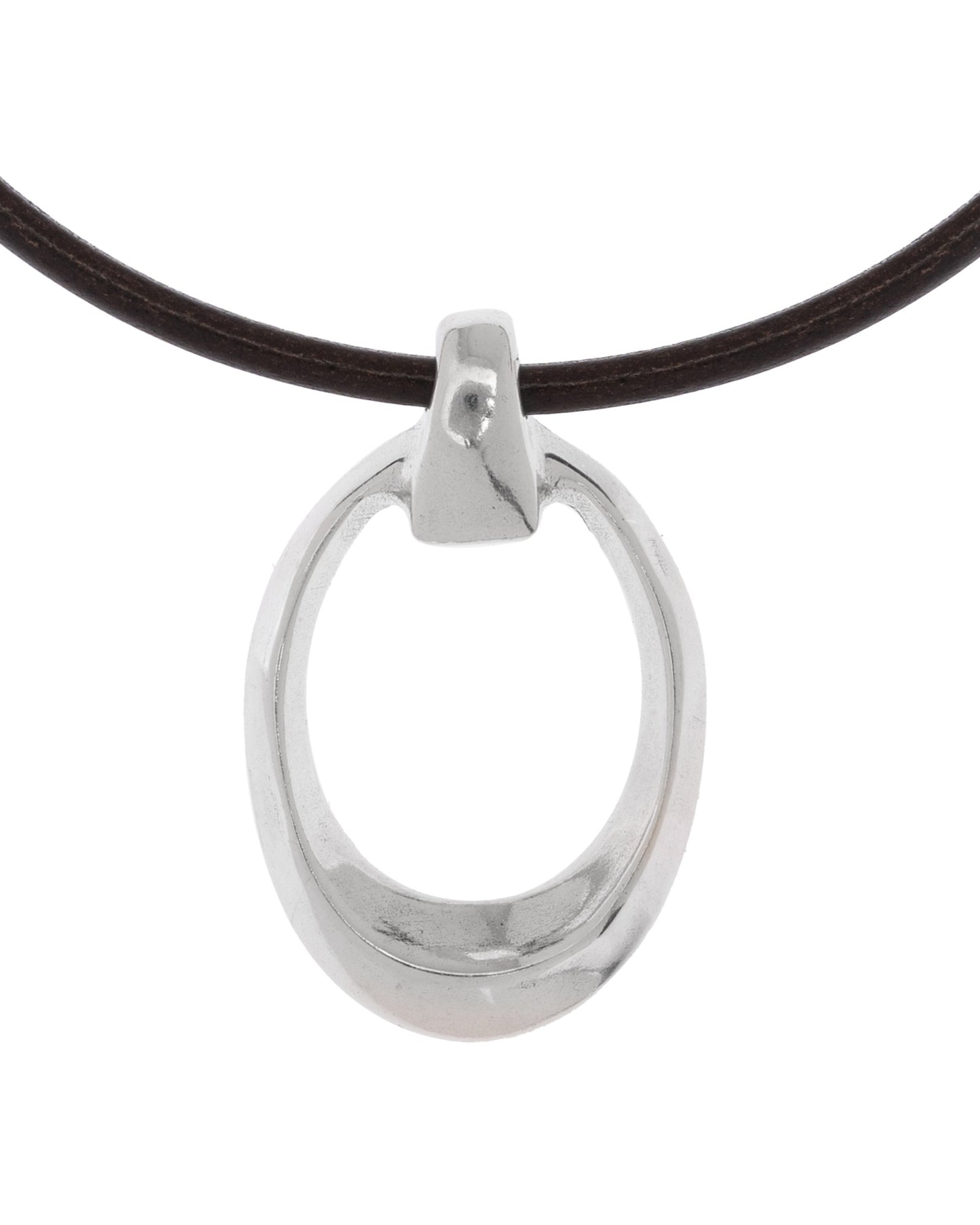 Collar de cordón de cuero grueso con colgante de pieza ovalada irregular de borde afilado.