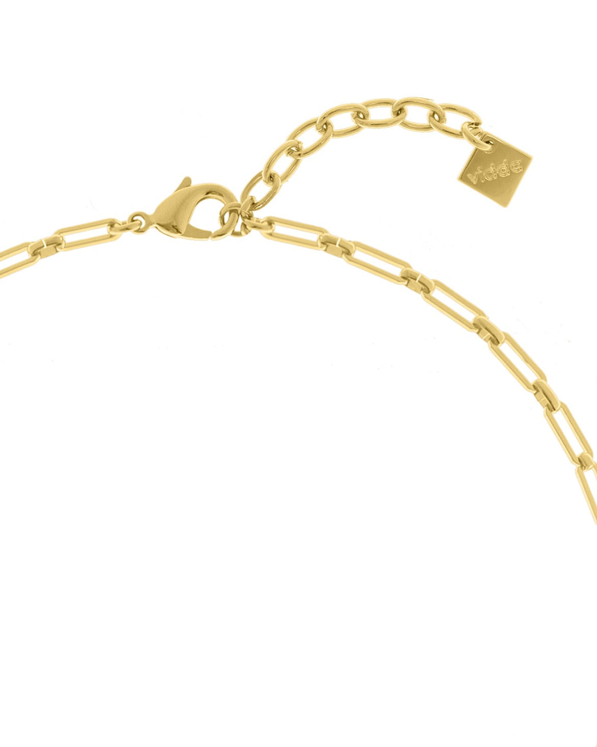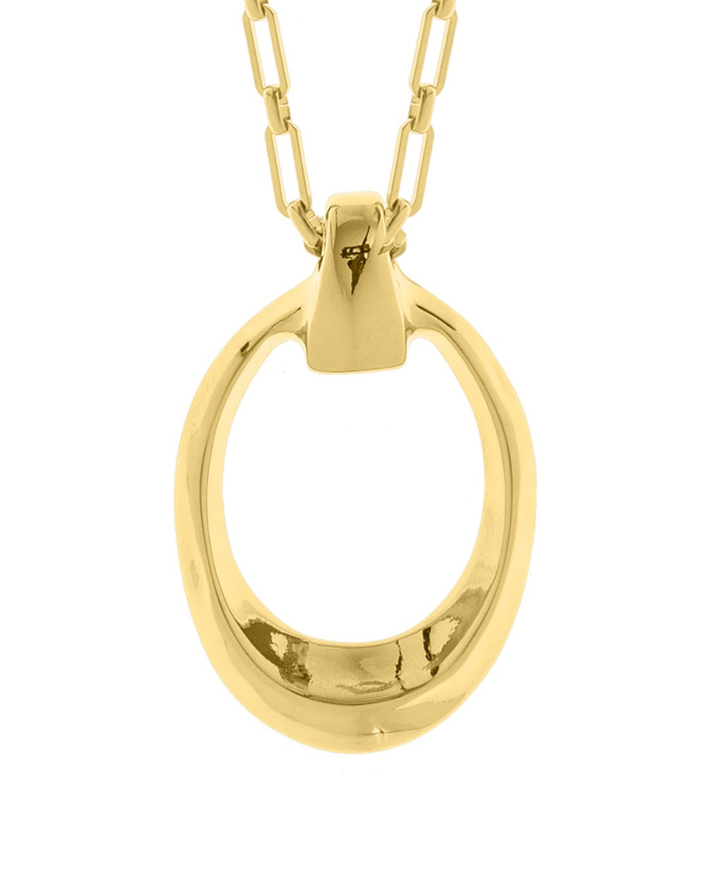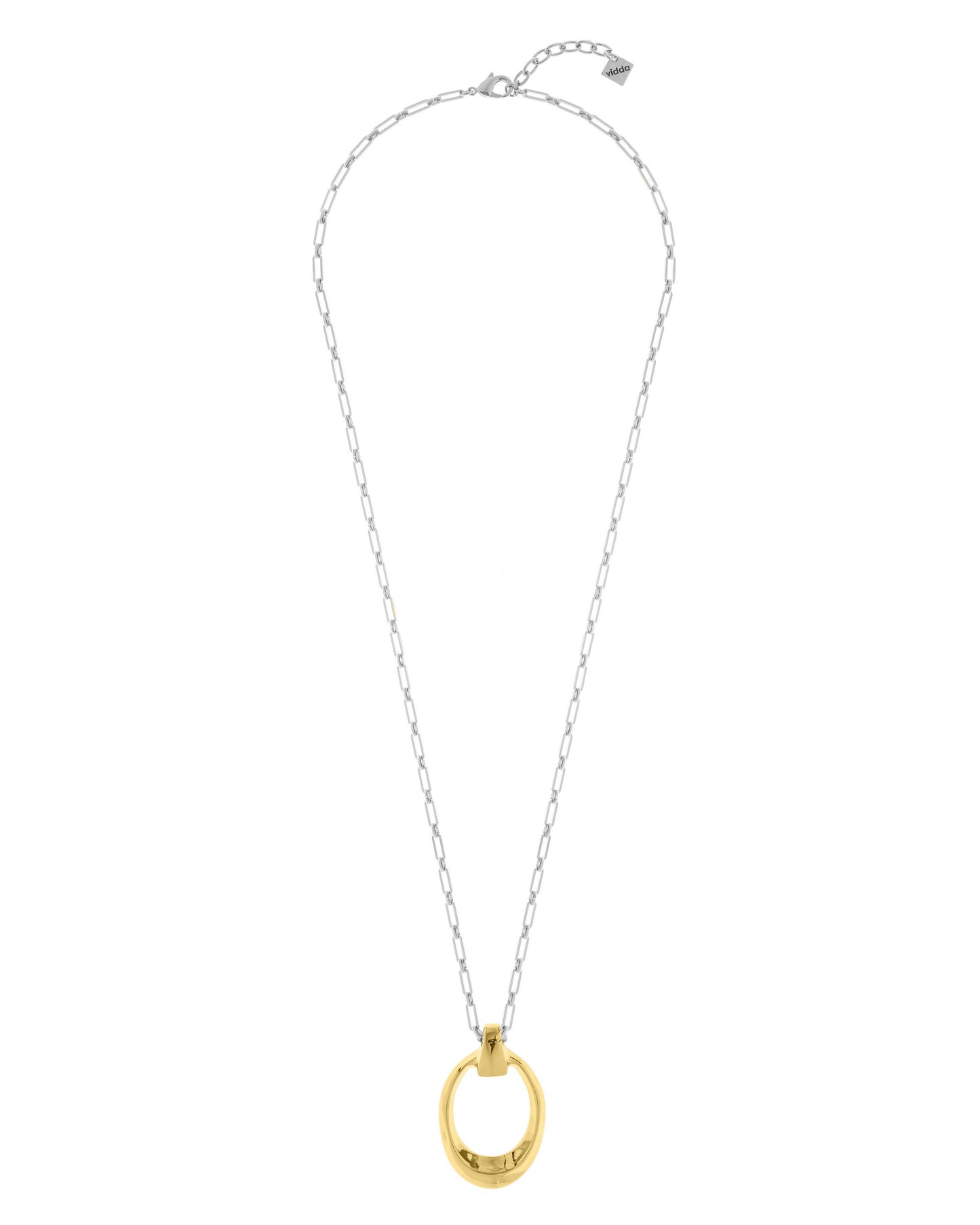 Collar largo de cadena de caja rectangular con colgante de pieza ovalada irregular de borde afilado.