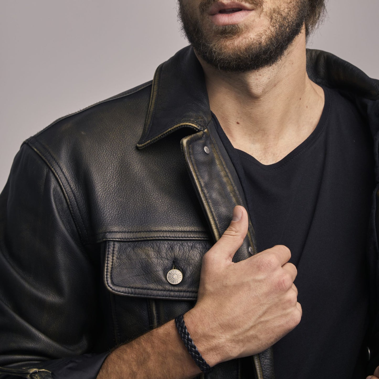 Pulsera de cuero plano trenzado.