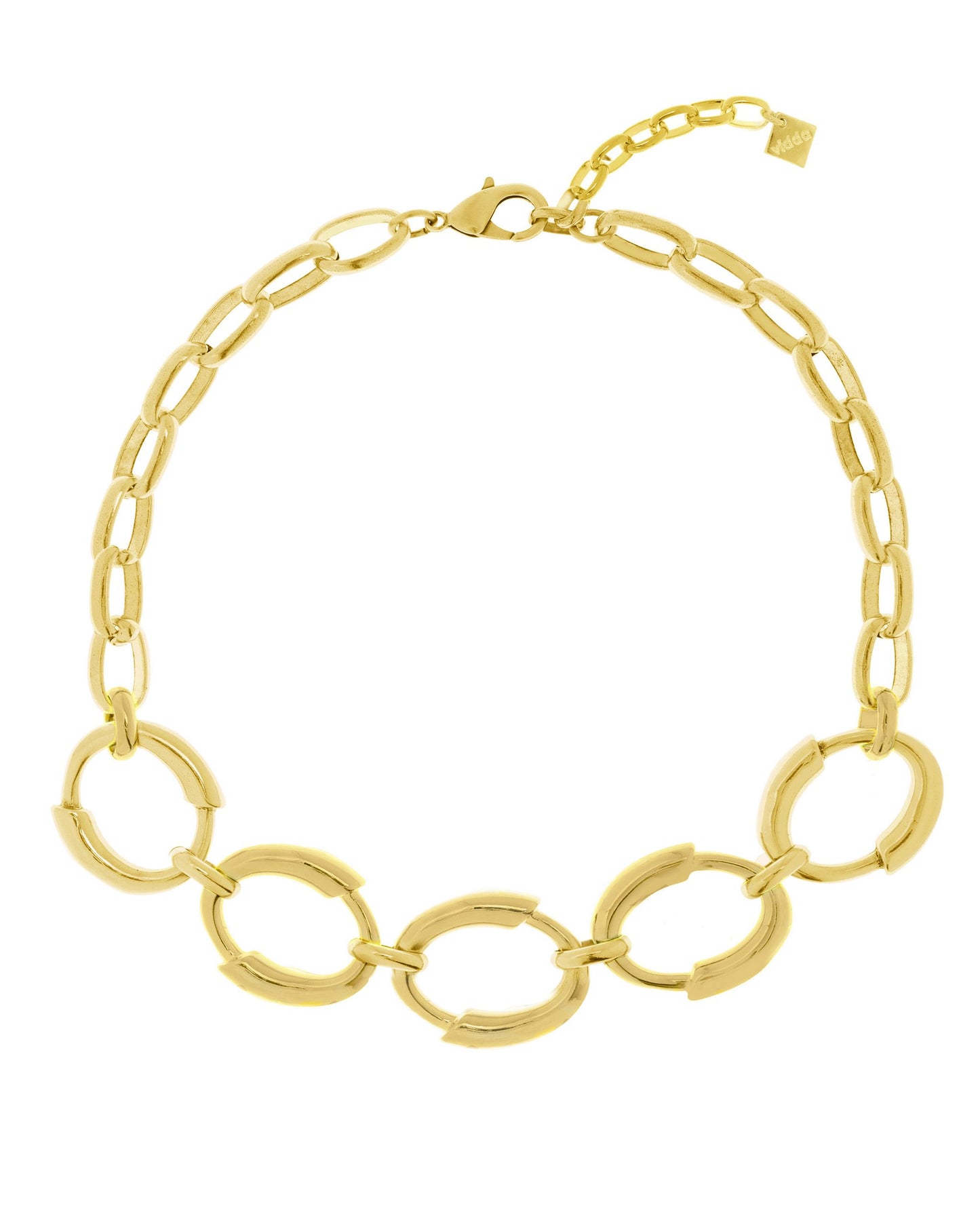 Collar corto de cadena con cinco eslabones circulares en la parte frontal, cada uno formado por dos elementos tubulares curvados.