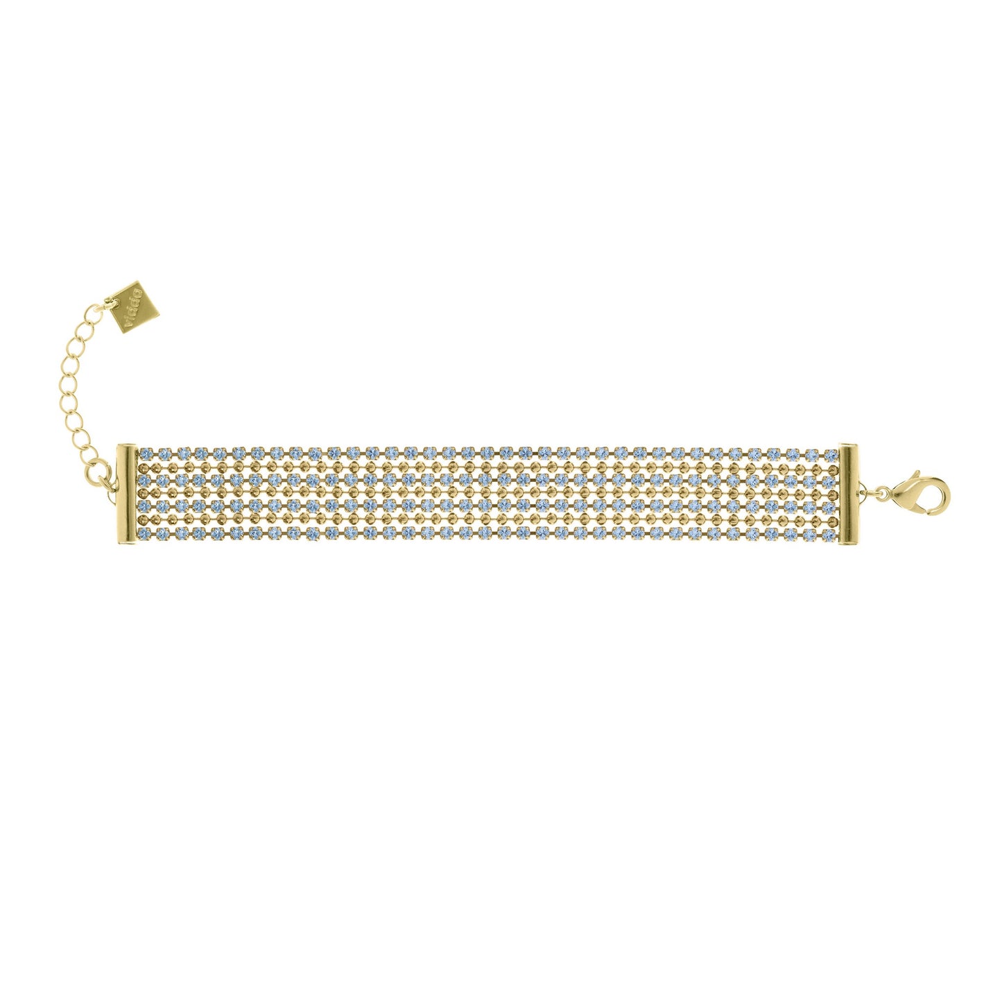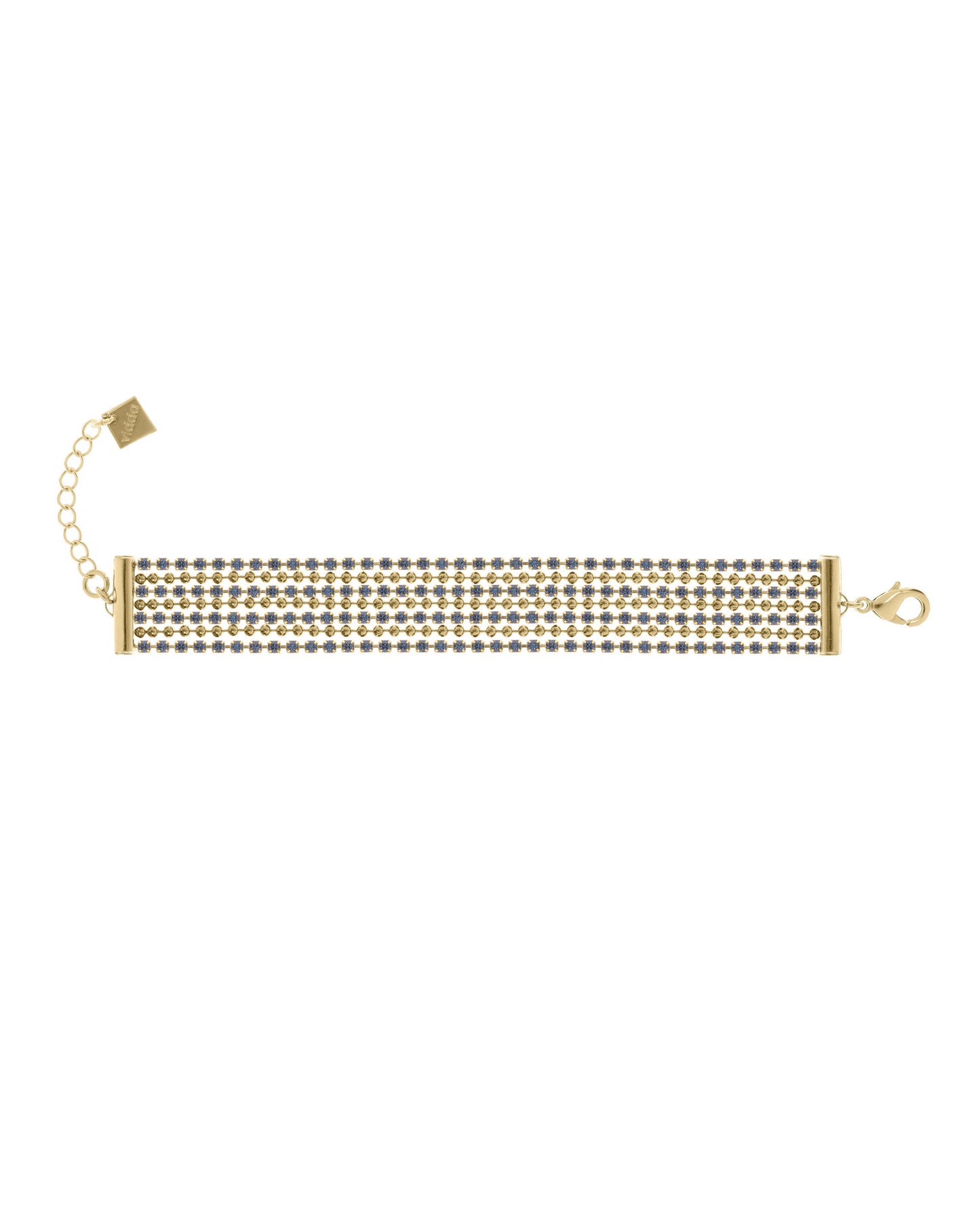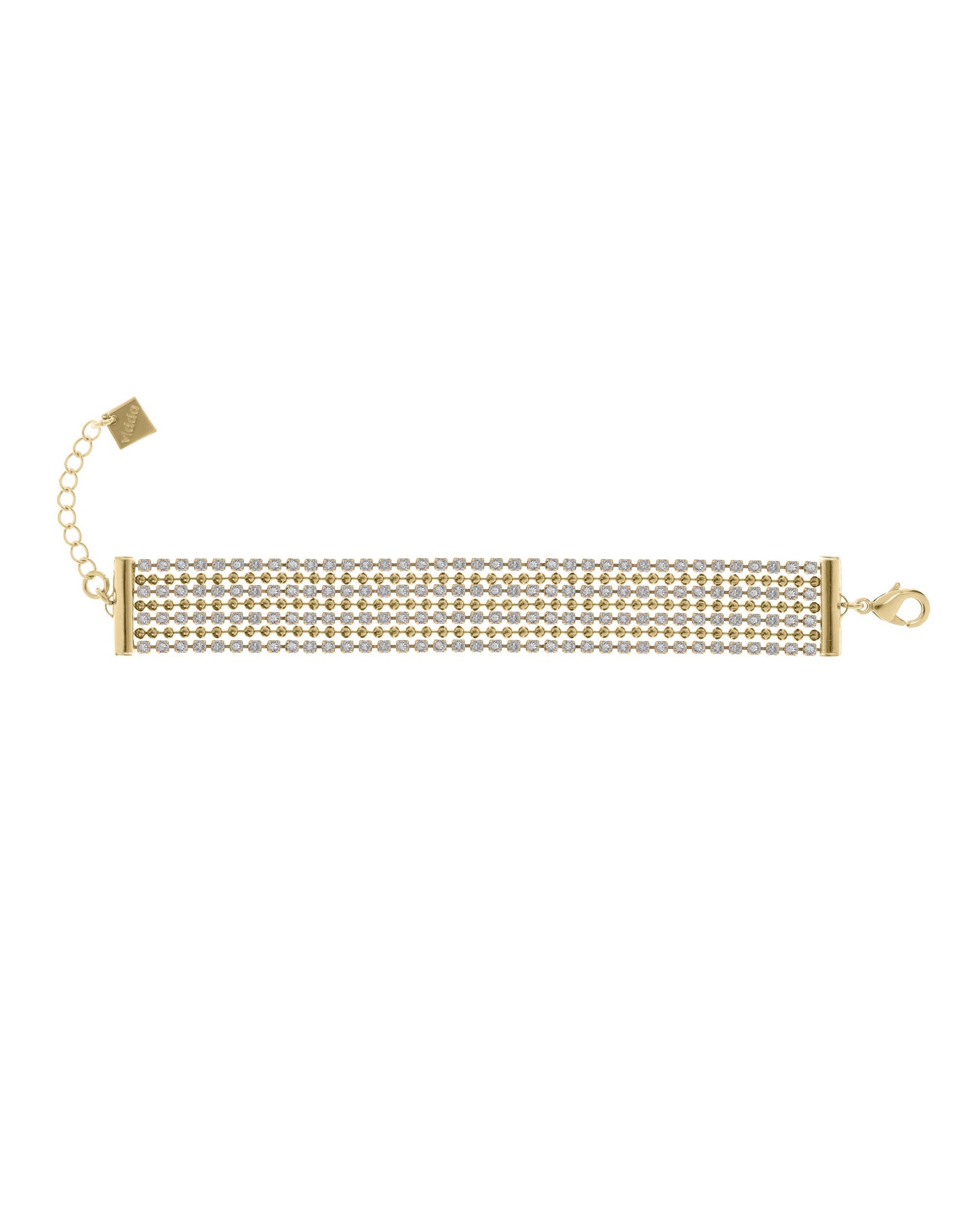 Precio regular $139.00Pulsera elaborada con finas tiras con cristales engarzados de alta calidad combinadas con cadenas de bolas.