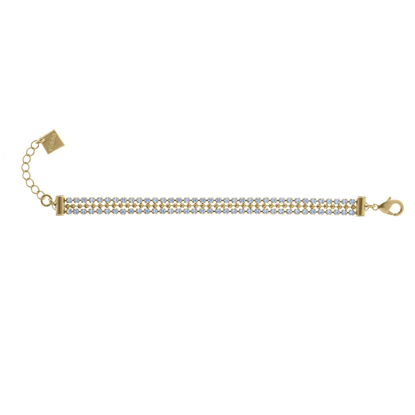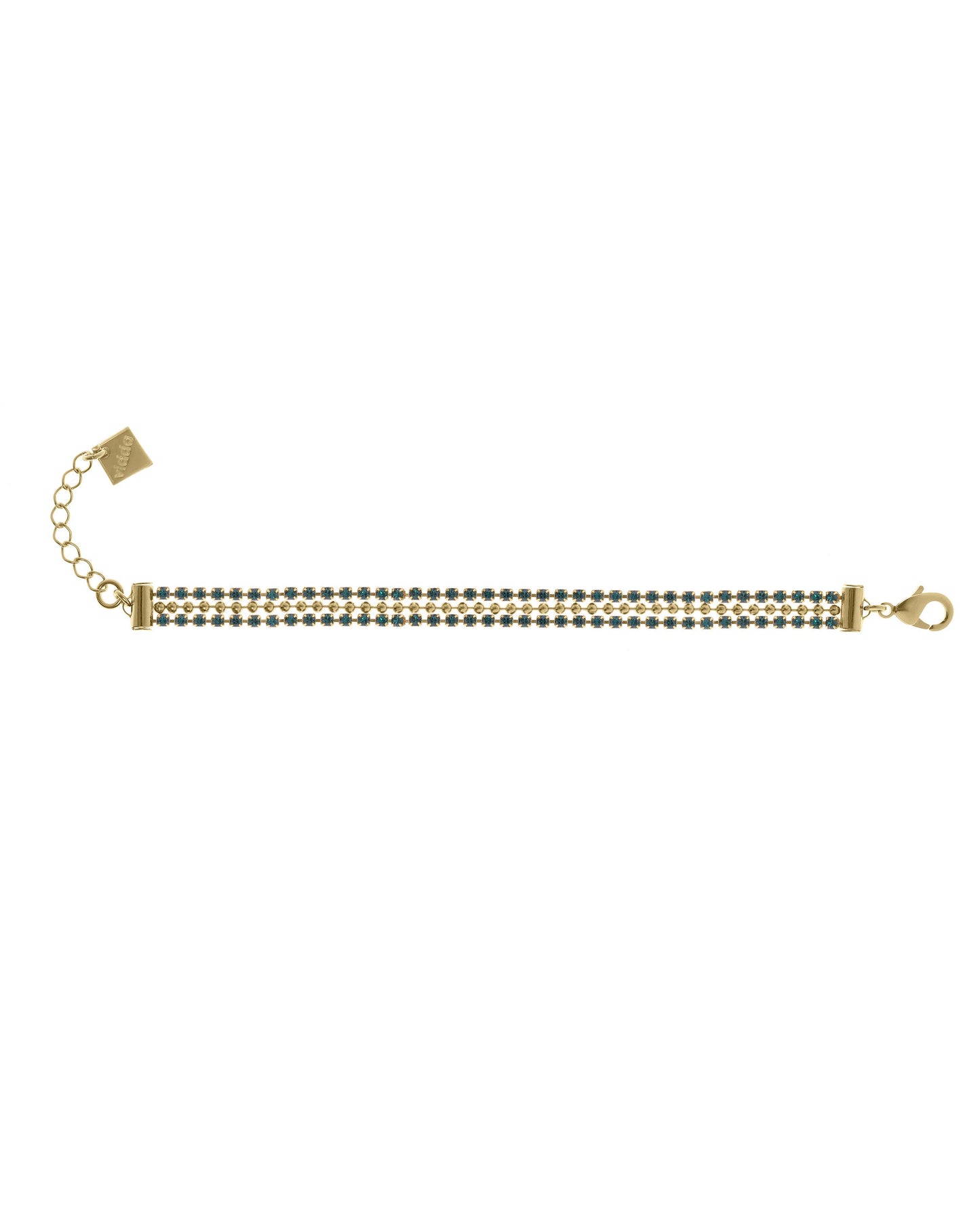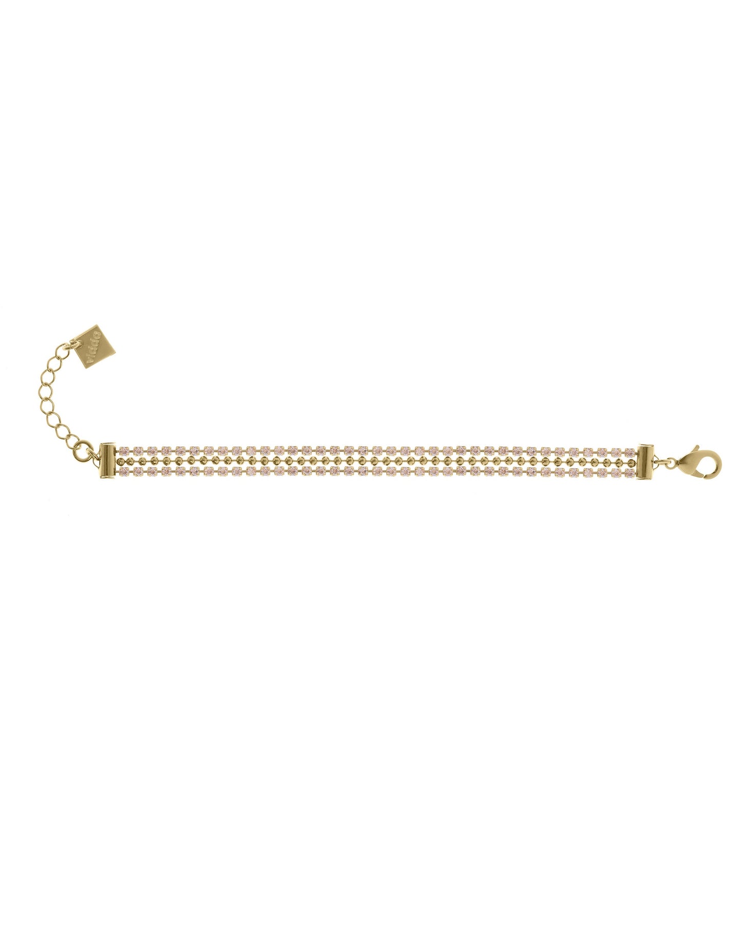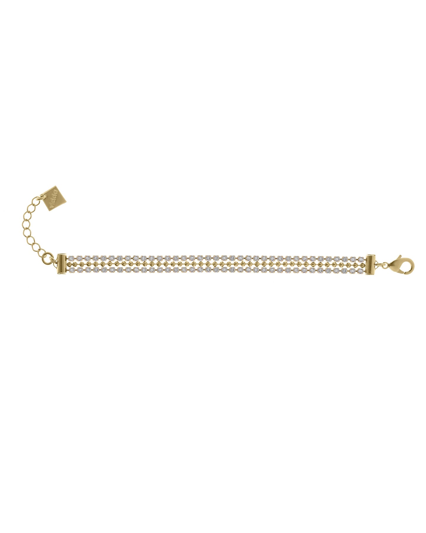 Precio regular $89.00Pulsera elaborada con dos finas tiras con cristales engarzados de alta calidad y una cadena de bolas entre ellas.
