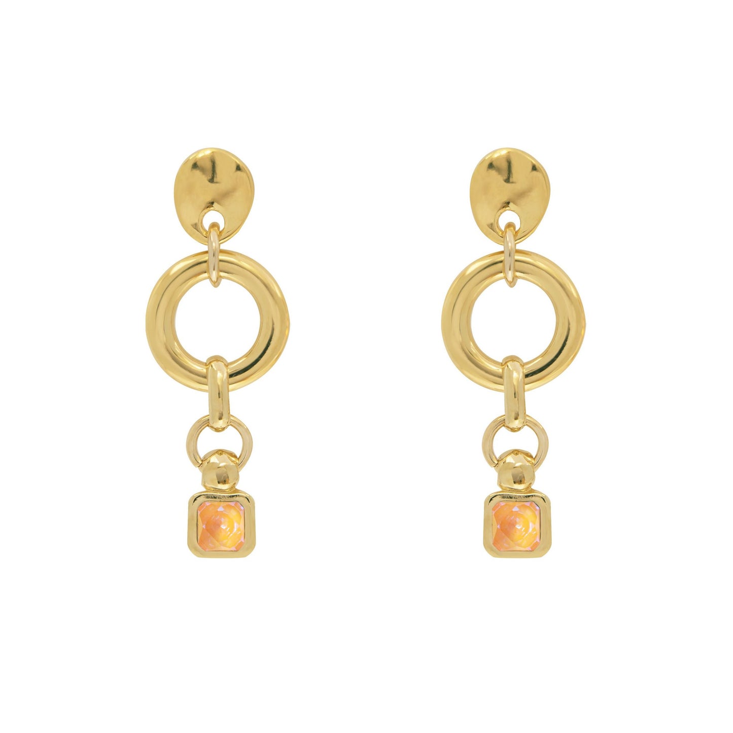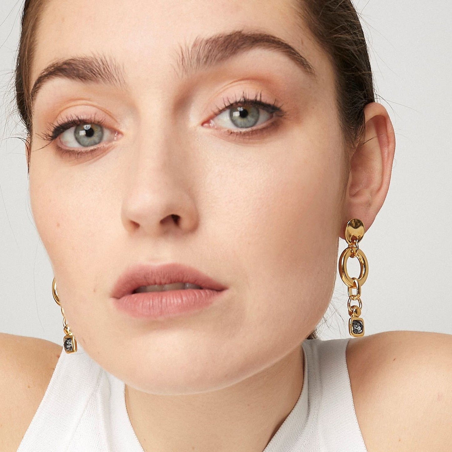 Precio regular $66.00Pendientes con un colgante circular con un mini cristal Swarovski® cuadrado.
