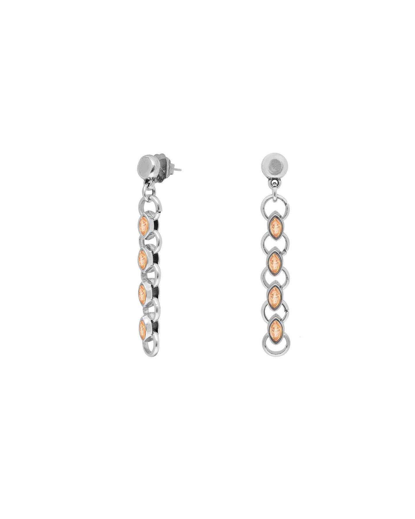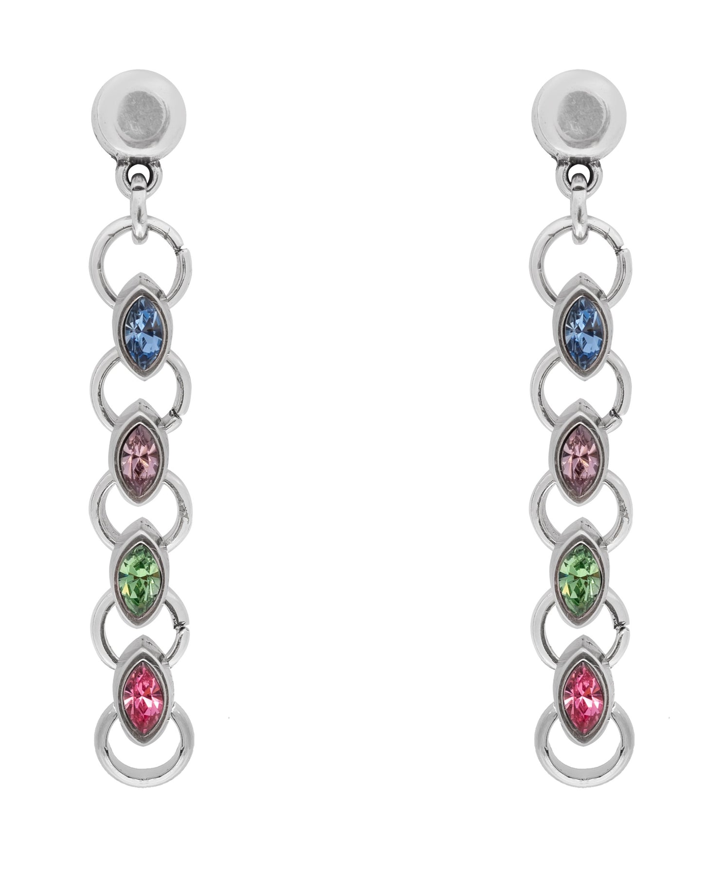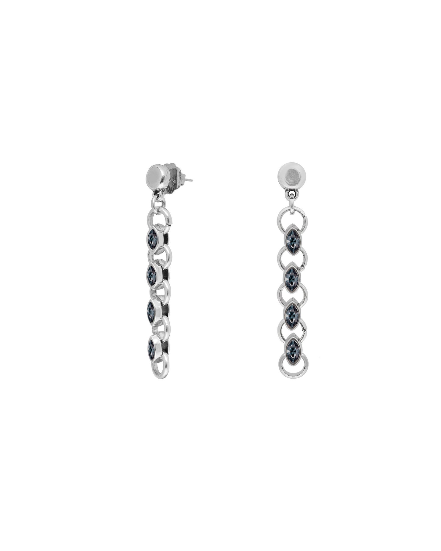 Precio regular $55.00Pendientes largos hechos con piezas medianas de tipo navette con cristal Swarovski® unidas entre si meidante una pequeña anilla.