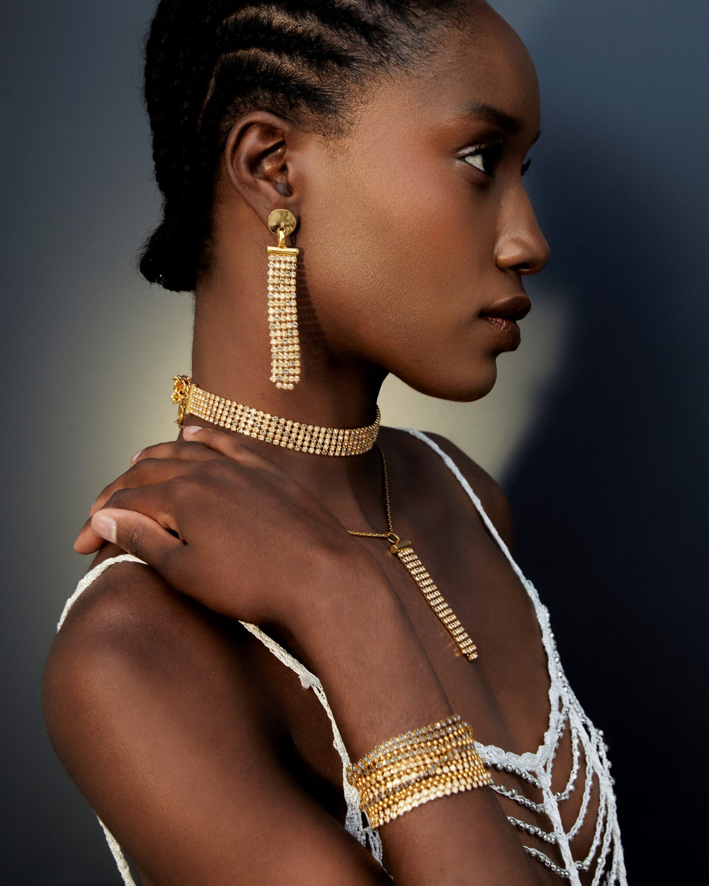 Precio regular $149.00Pendientes largos hechos con una malla con cristales engarzados de alta calidad diseñada exclusivamente por y para VIDDA.