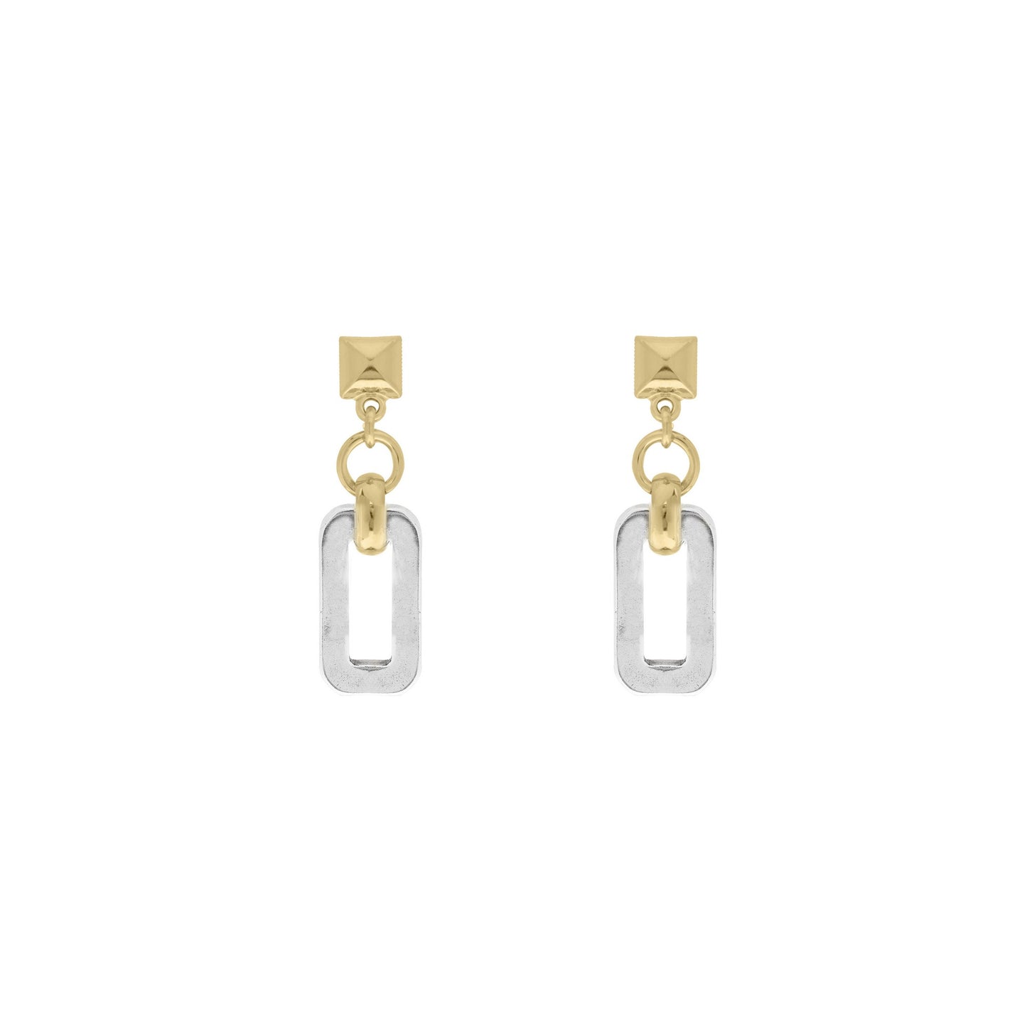 Pendientes cortos hechos a partir de un pequeño eslabón rectangular.