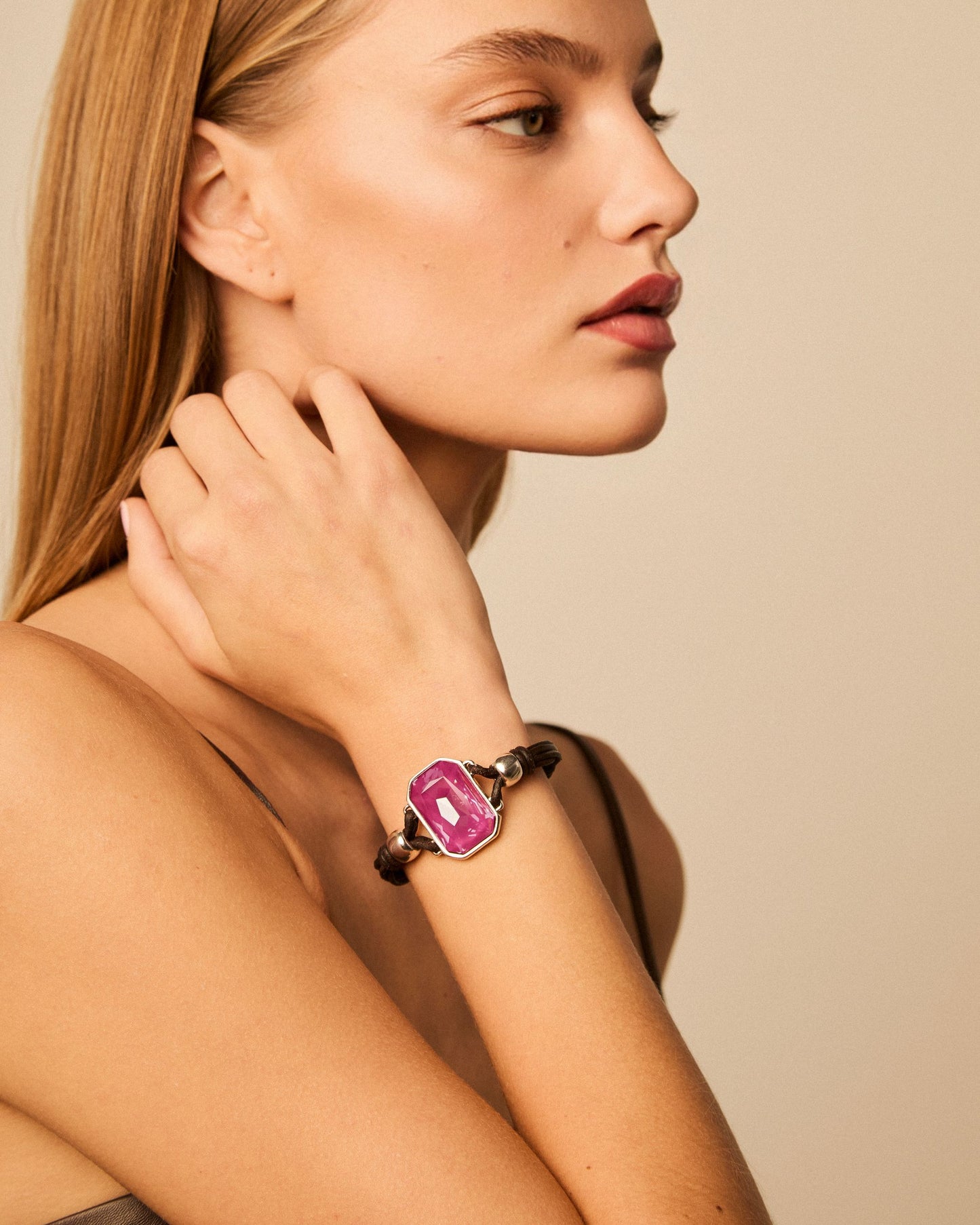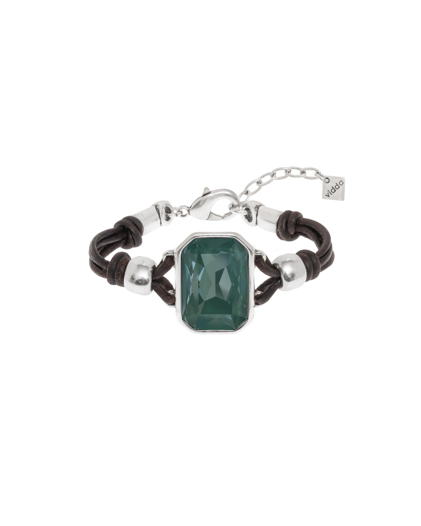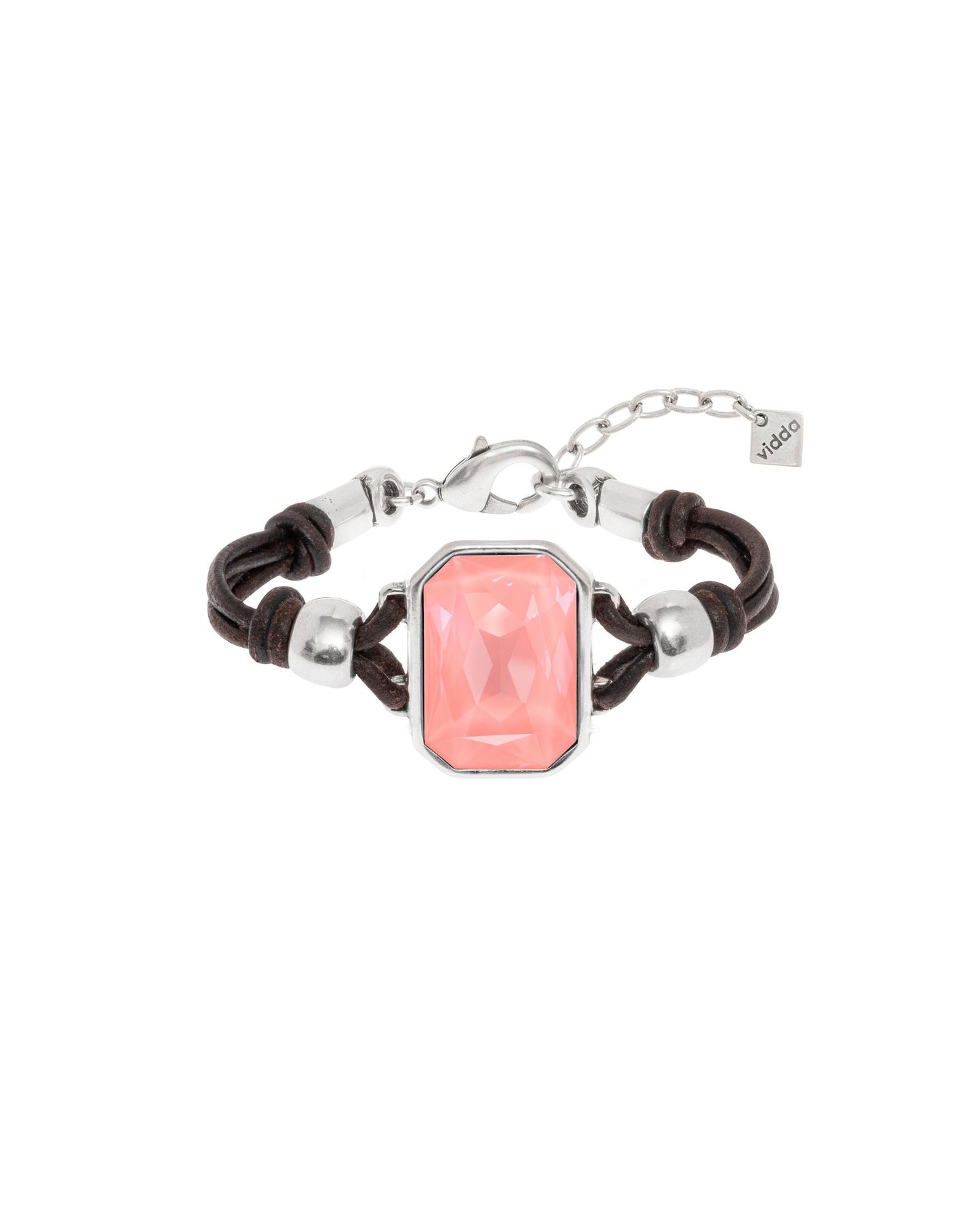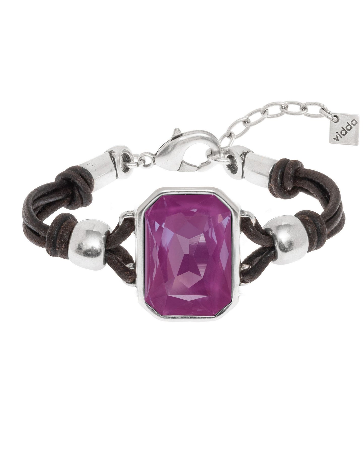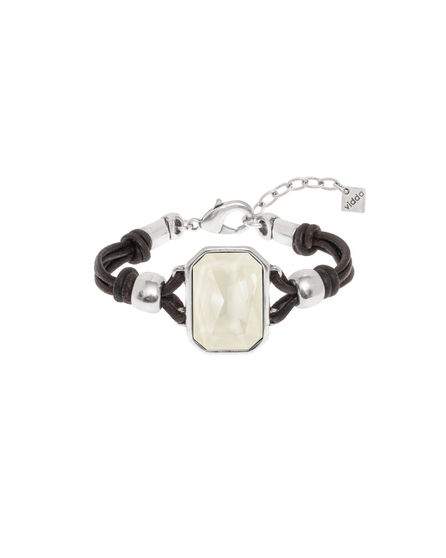 Pulsera de doble cordón de cuero fino con una pieza rectangular con cristal Swarovski®.