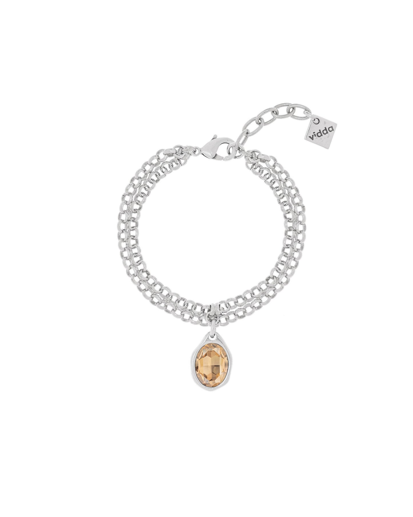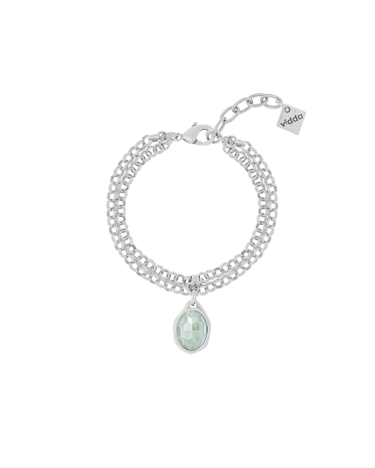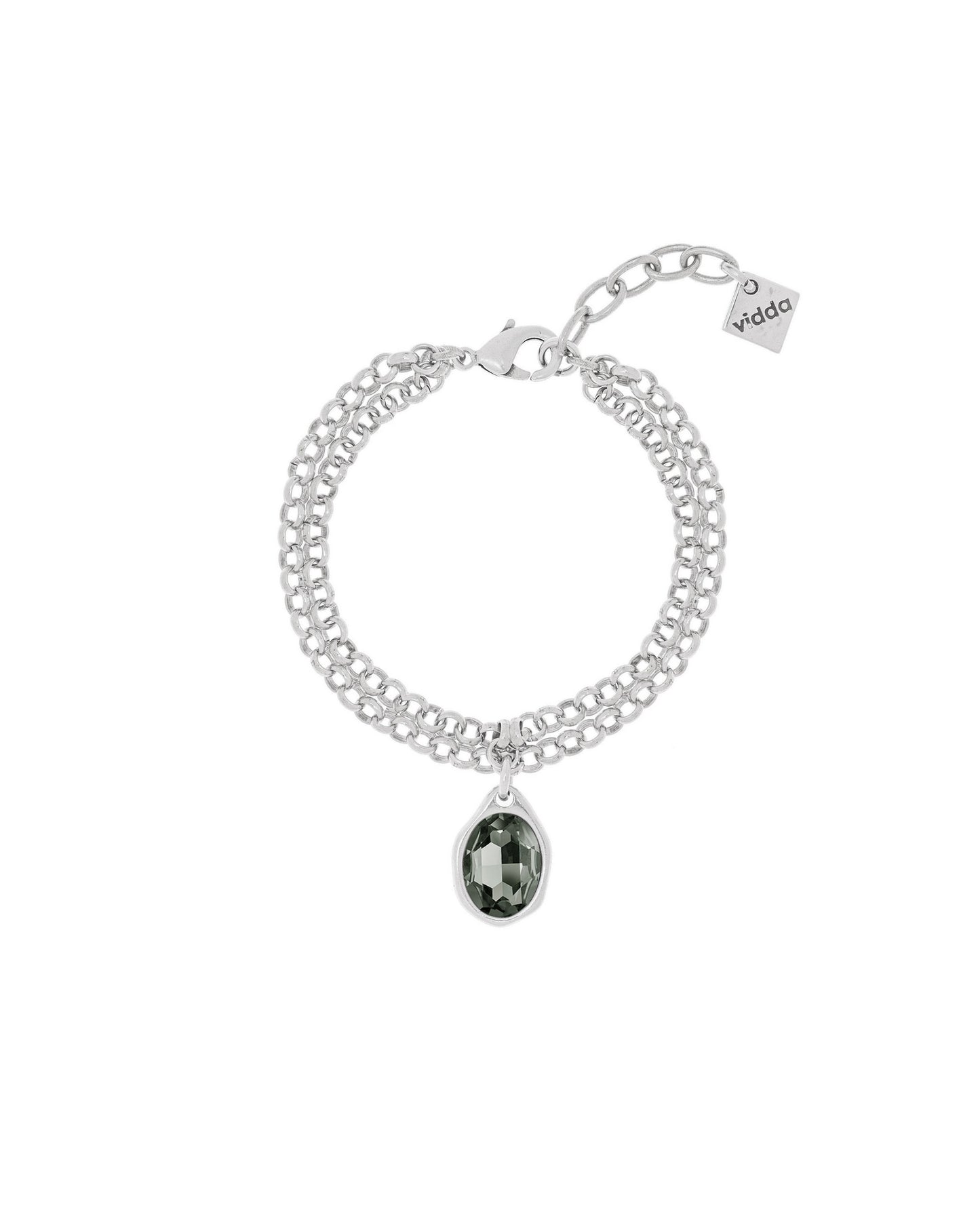 Pulsera de doble cadena rolo con un charm de cristal Swarovski® ovalado.