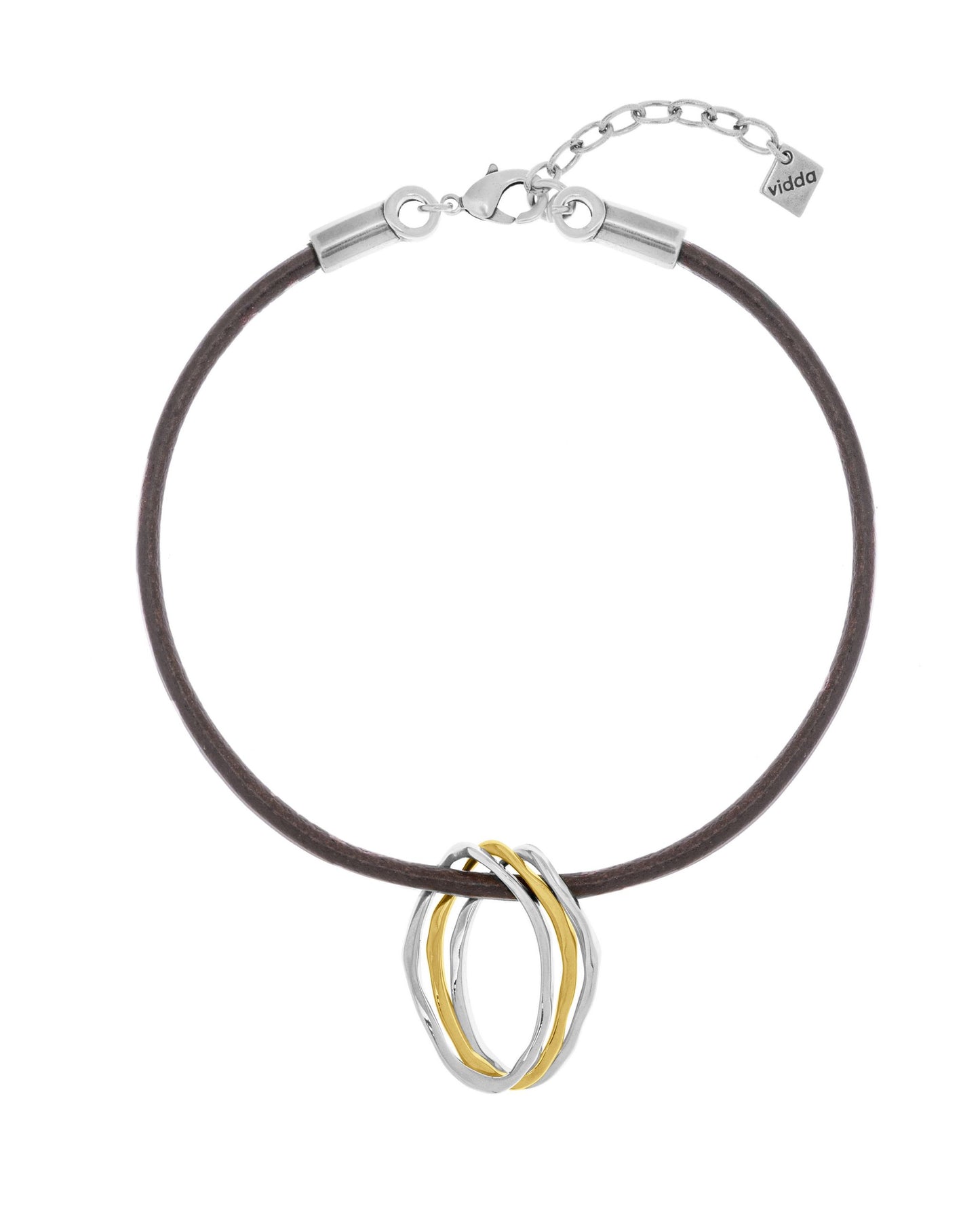 Collar de cordón de cuero grueso con tres colgantes ovalados de forma irregular.
