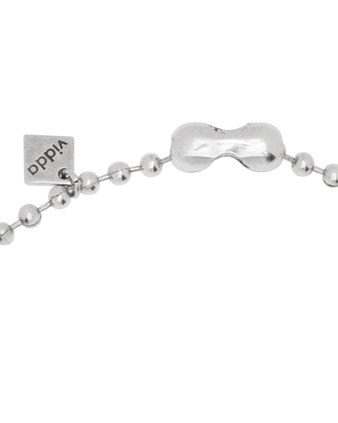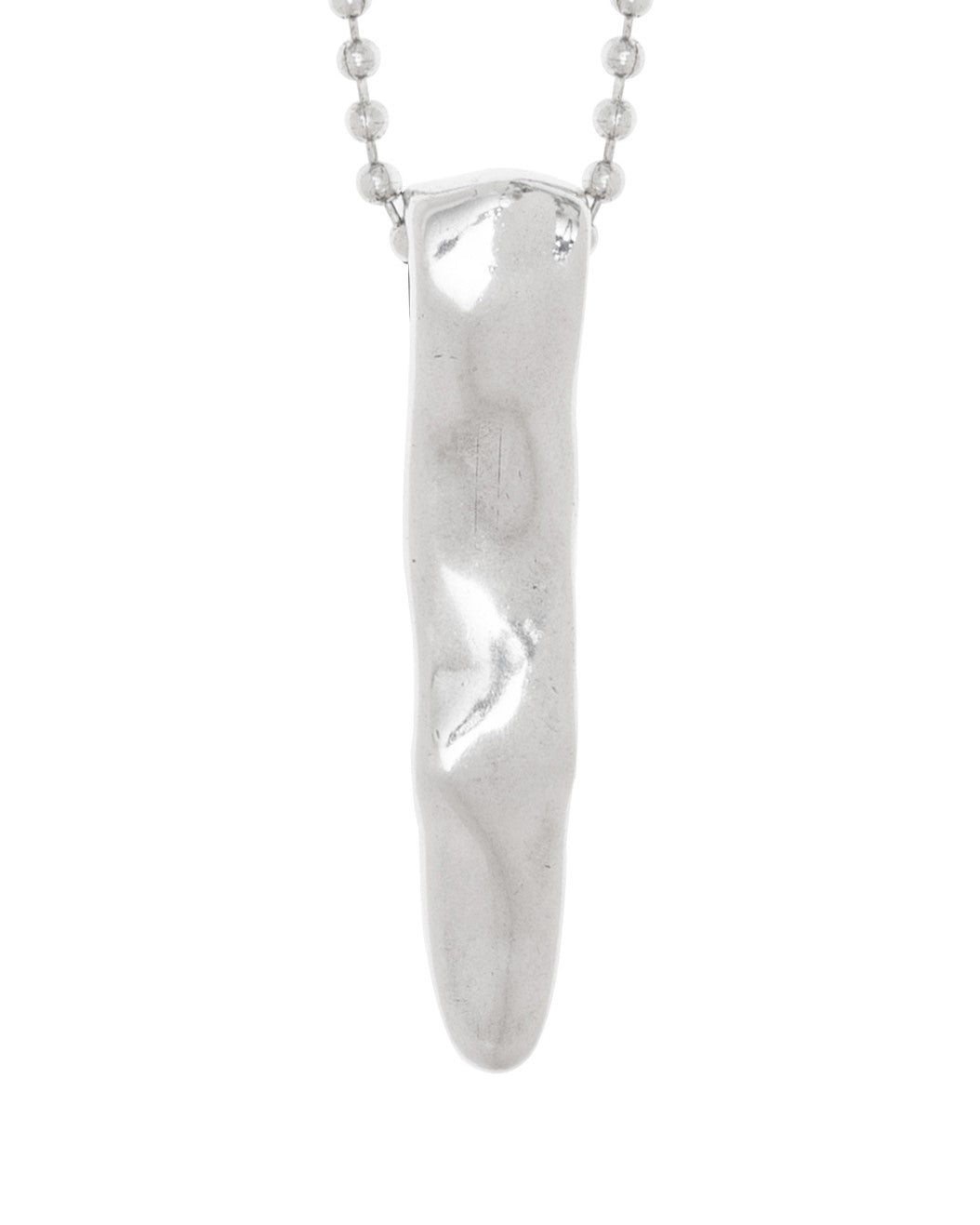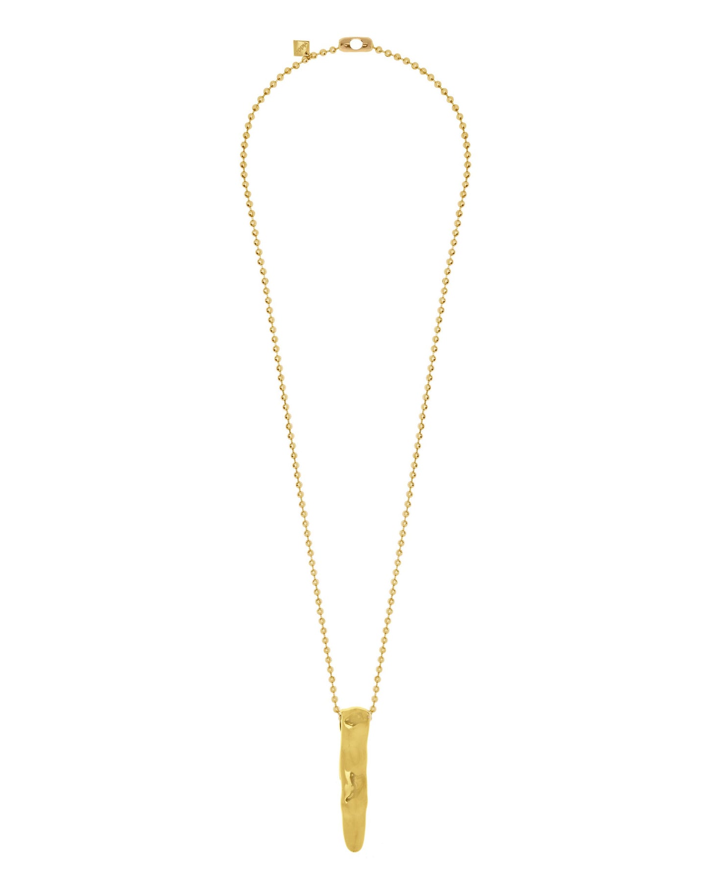 Collar largo de cadena de bolas con un colgante largo de forma abstracta y orgánica.
