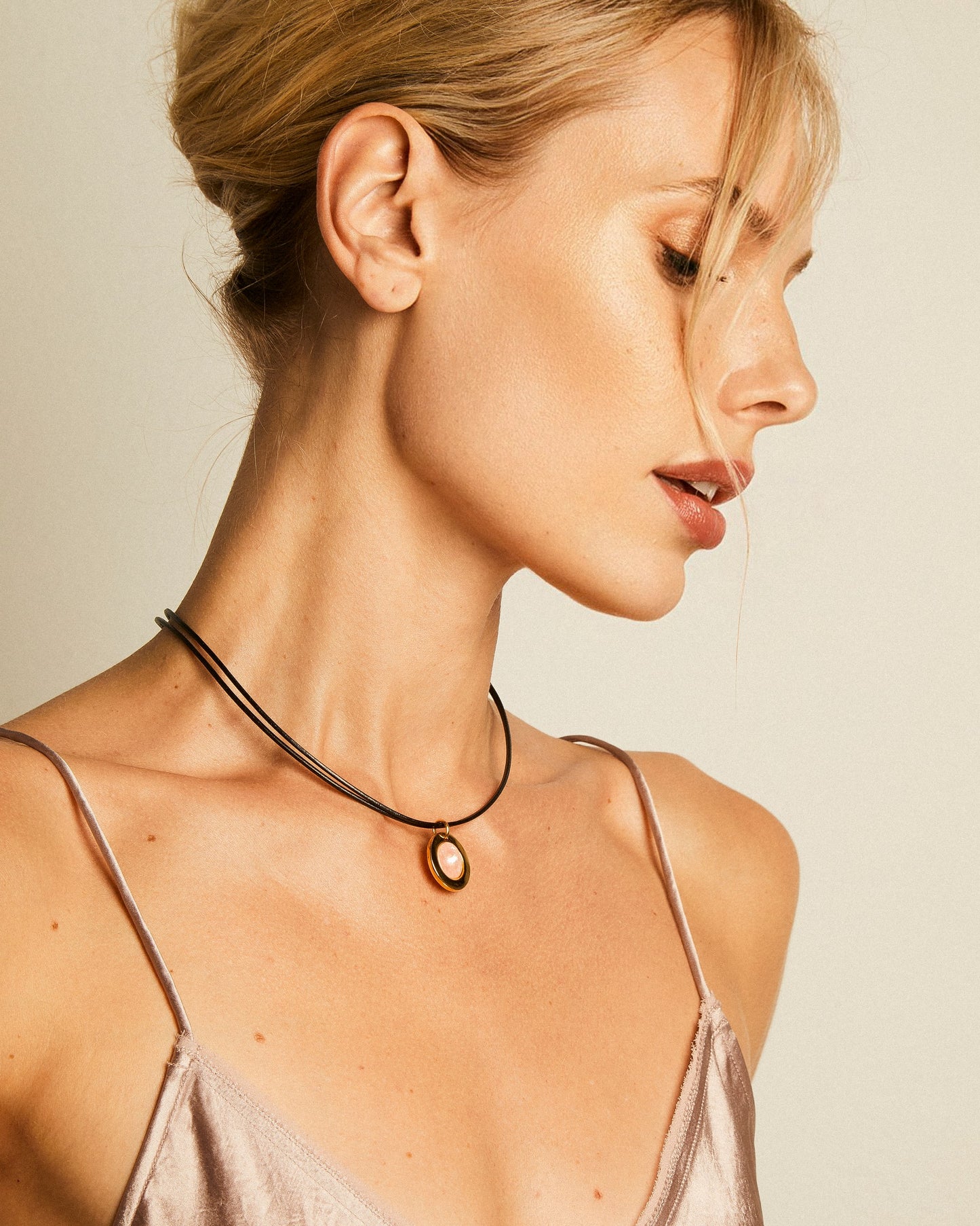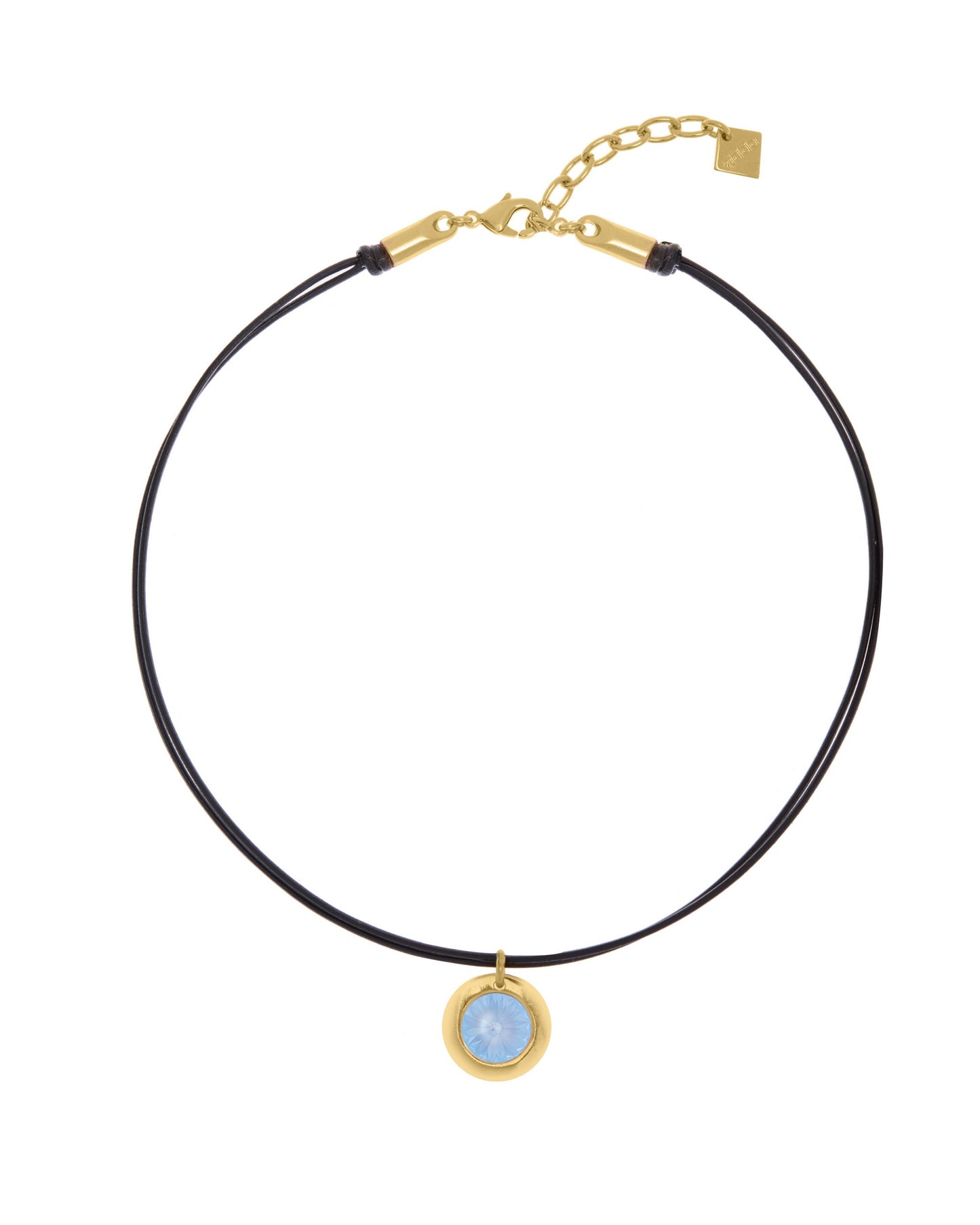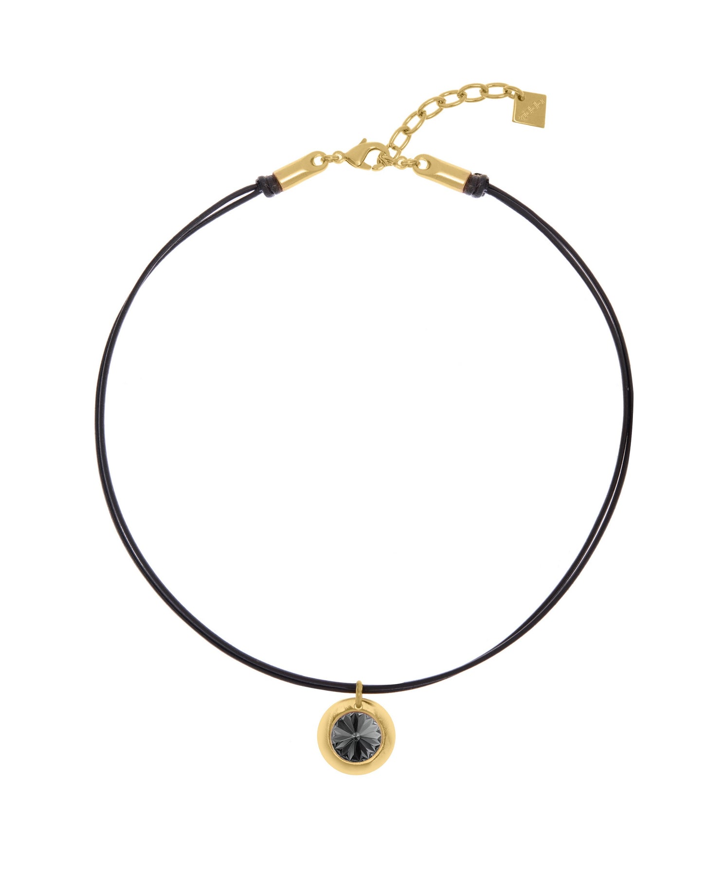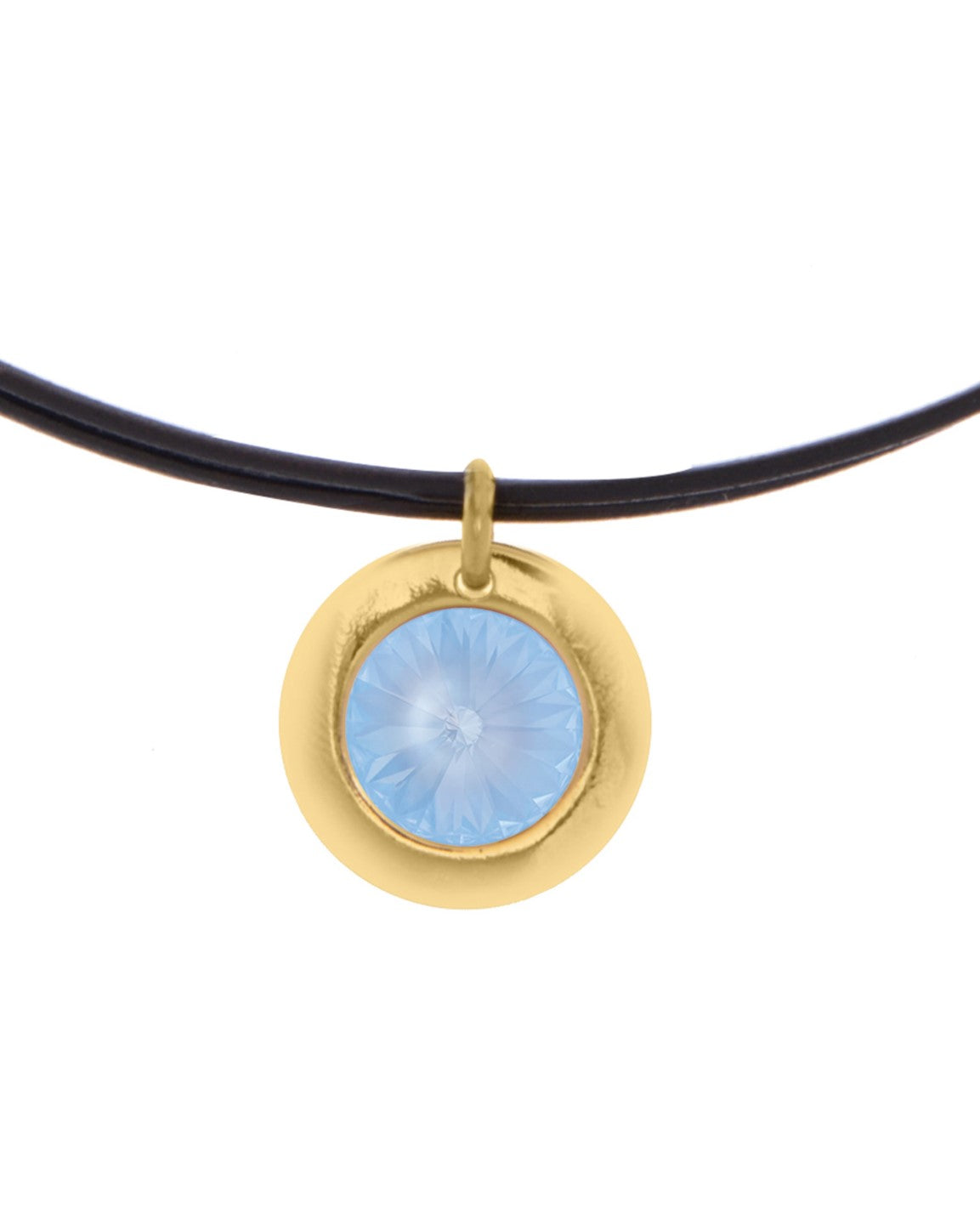 Collar de cordón de cuero doble con colgante circular con cristal Swarovski® en el centro.