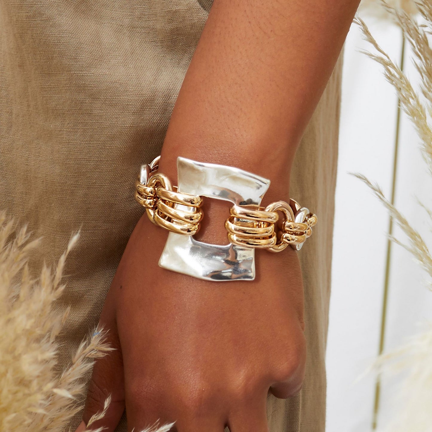 Precio regular $117.00Pulsera de cadena con una pieza rectangular en el centro.