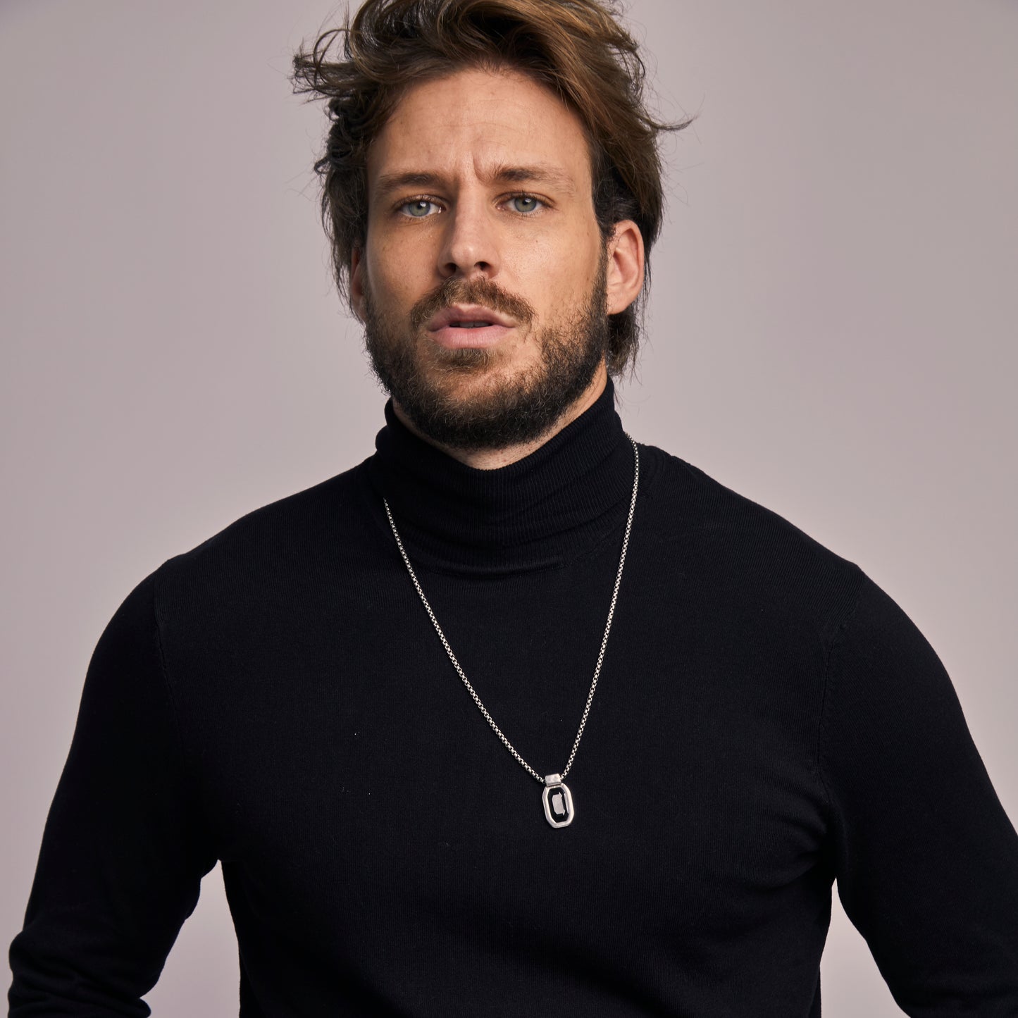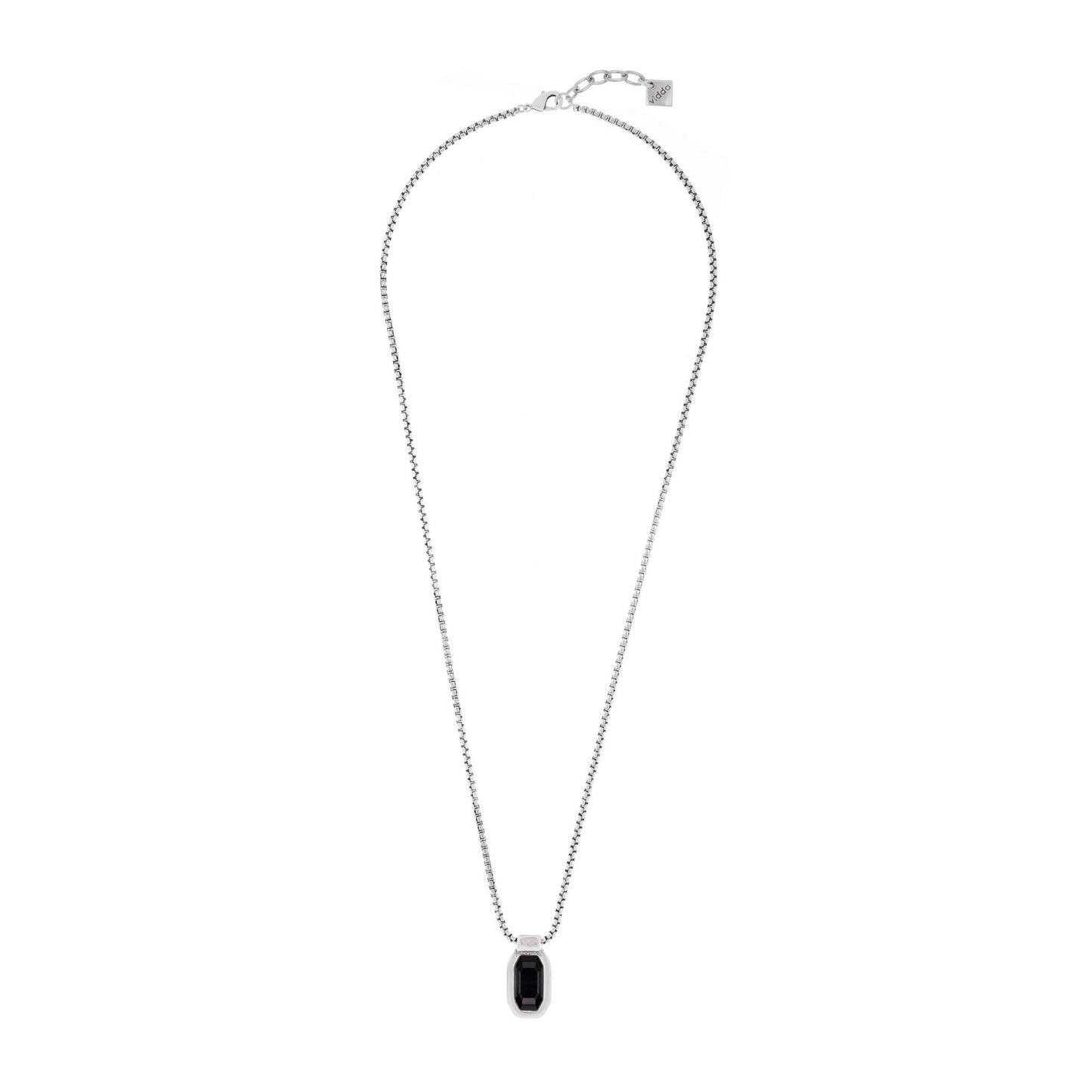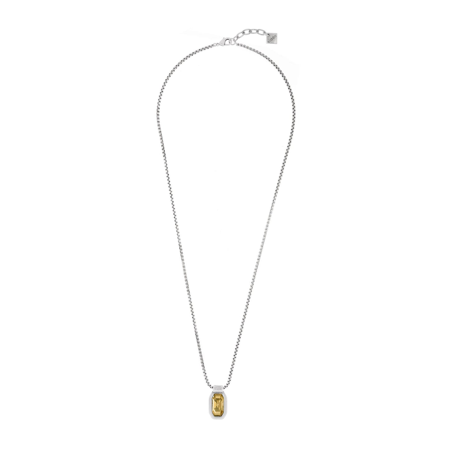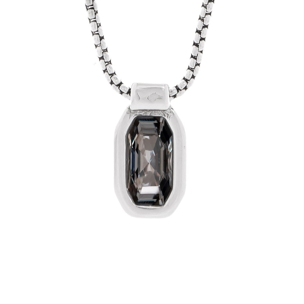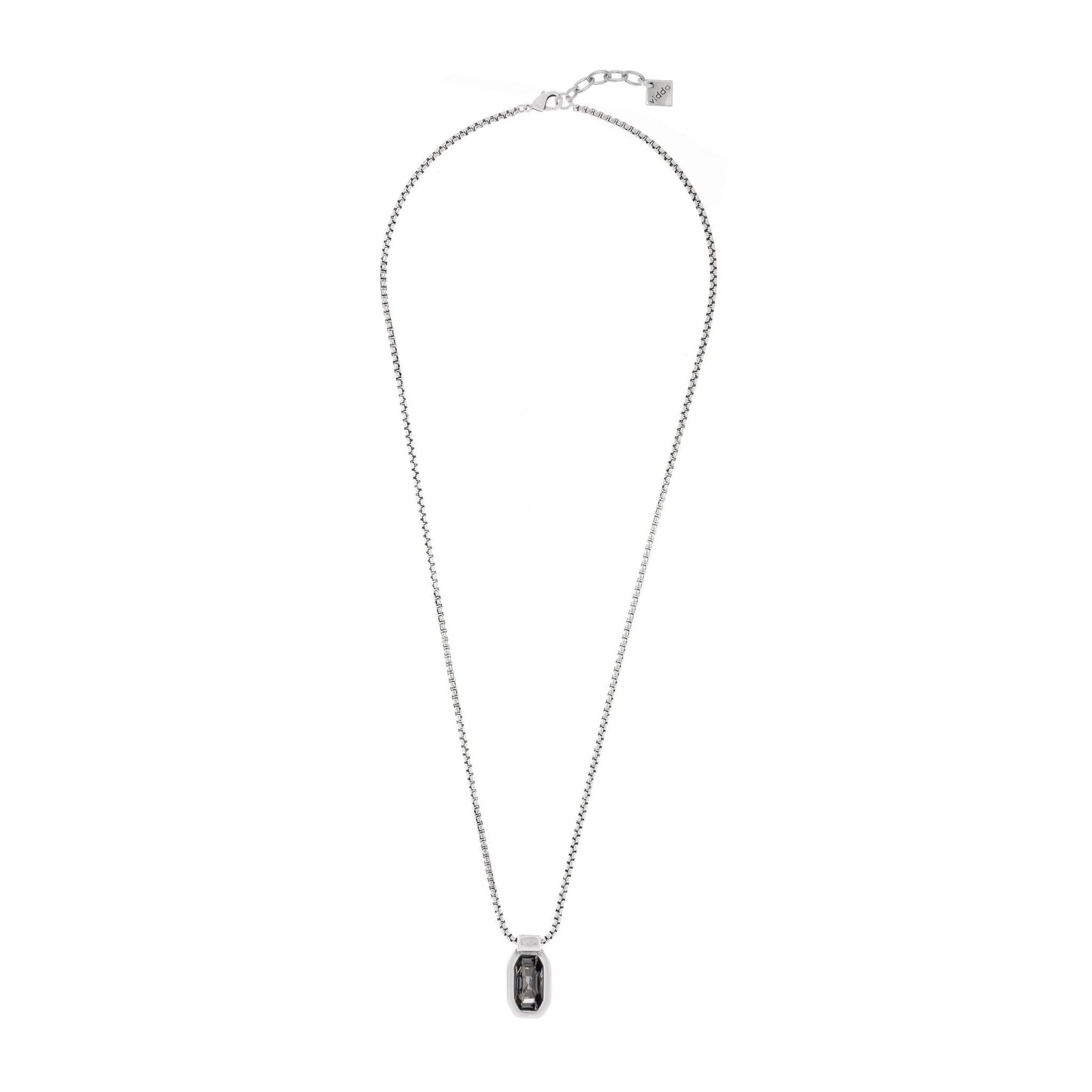 Collar largo de cadena de caja con un colgante rectangular con cristal Swarovski® en el centro.
