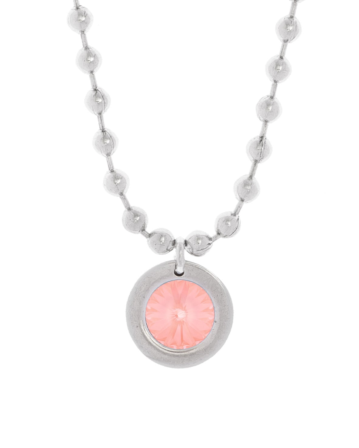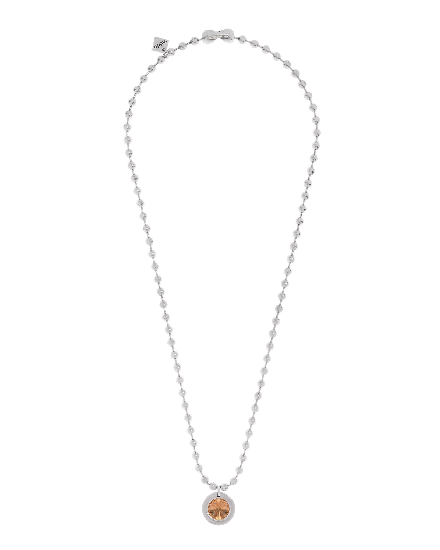 Collar largo de cadena de bolas mediana con colgante circular con cristal Swarovski®.