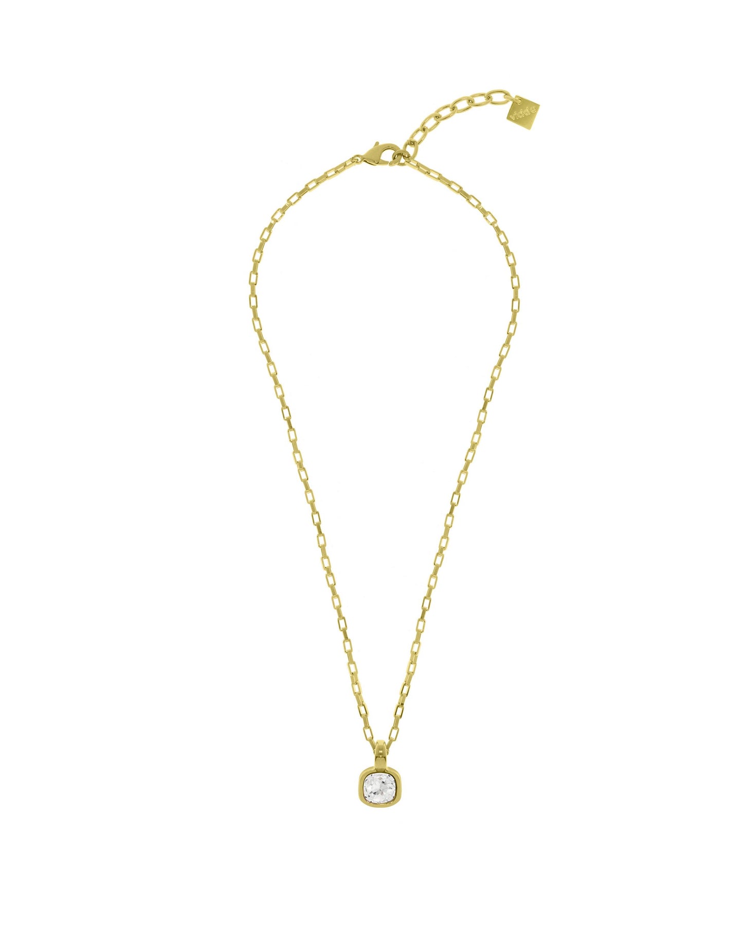 Collar de cadena con un pequeño colgante cuadrado que presenta un cristal Swarovski®.