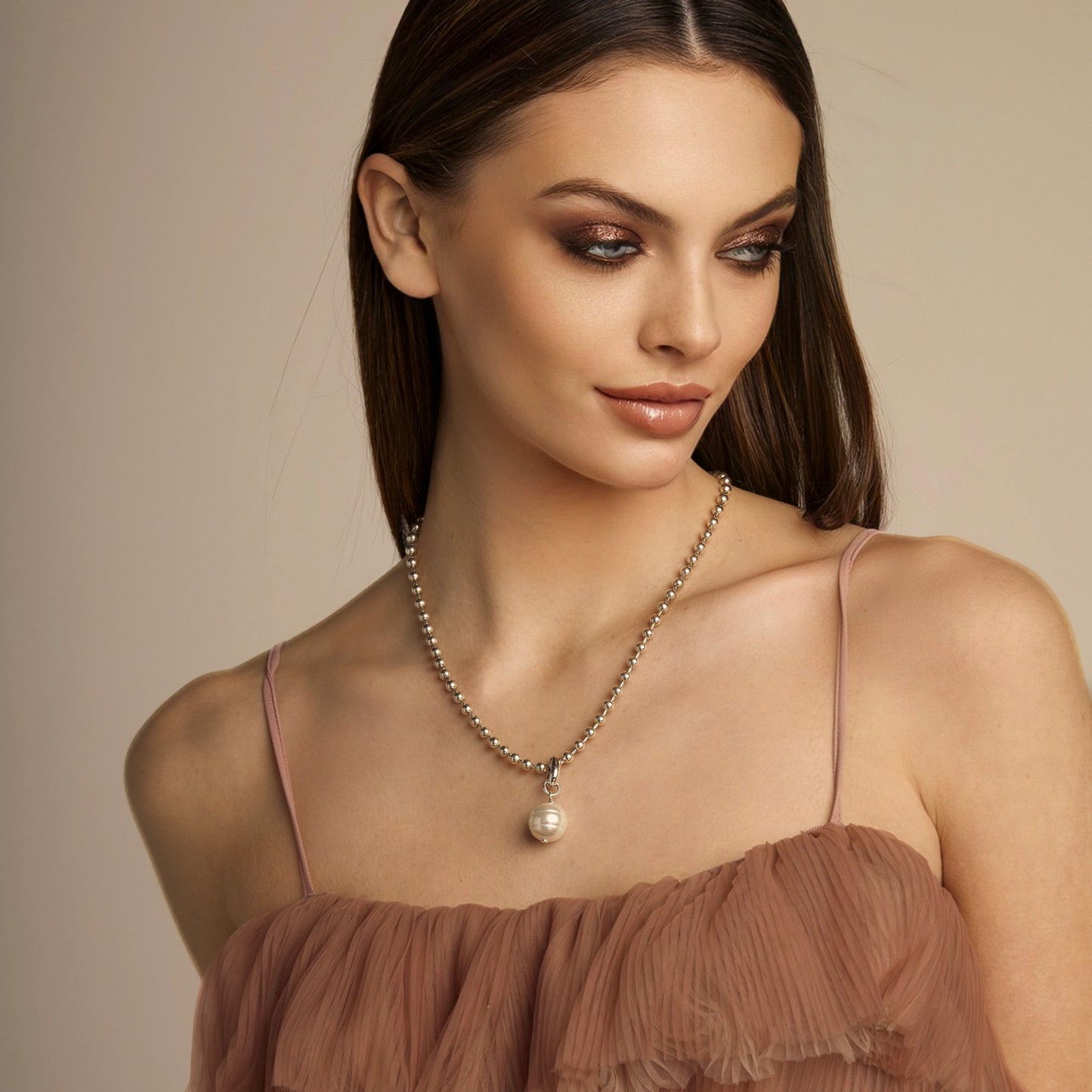Precio regular $79.00Collar largo de cadena de bolas con colgante de perla de estilo barroco.