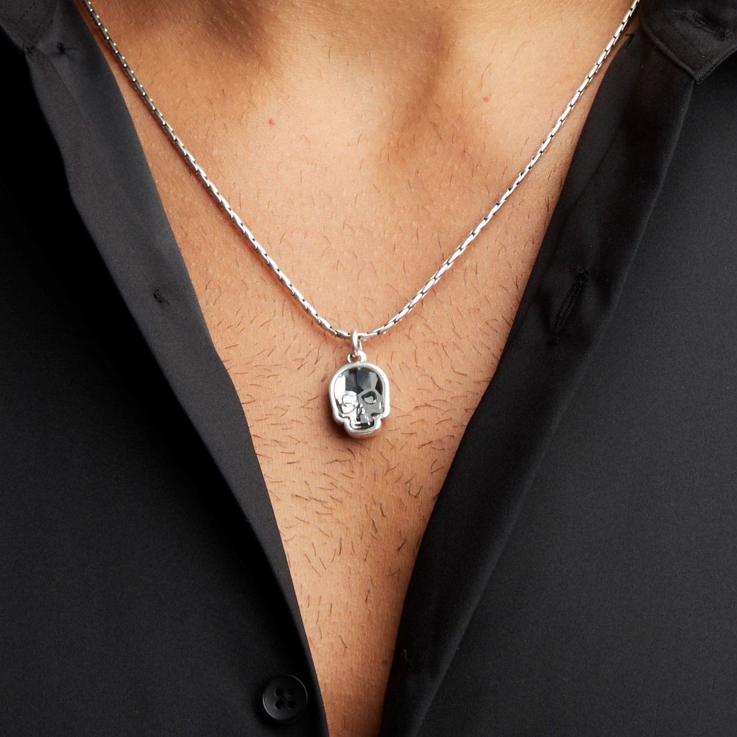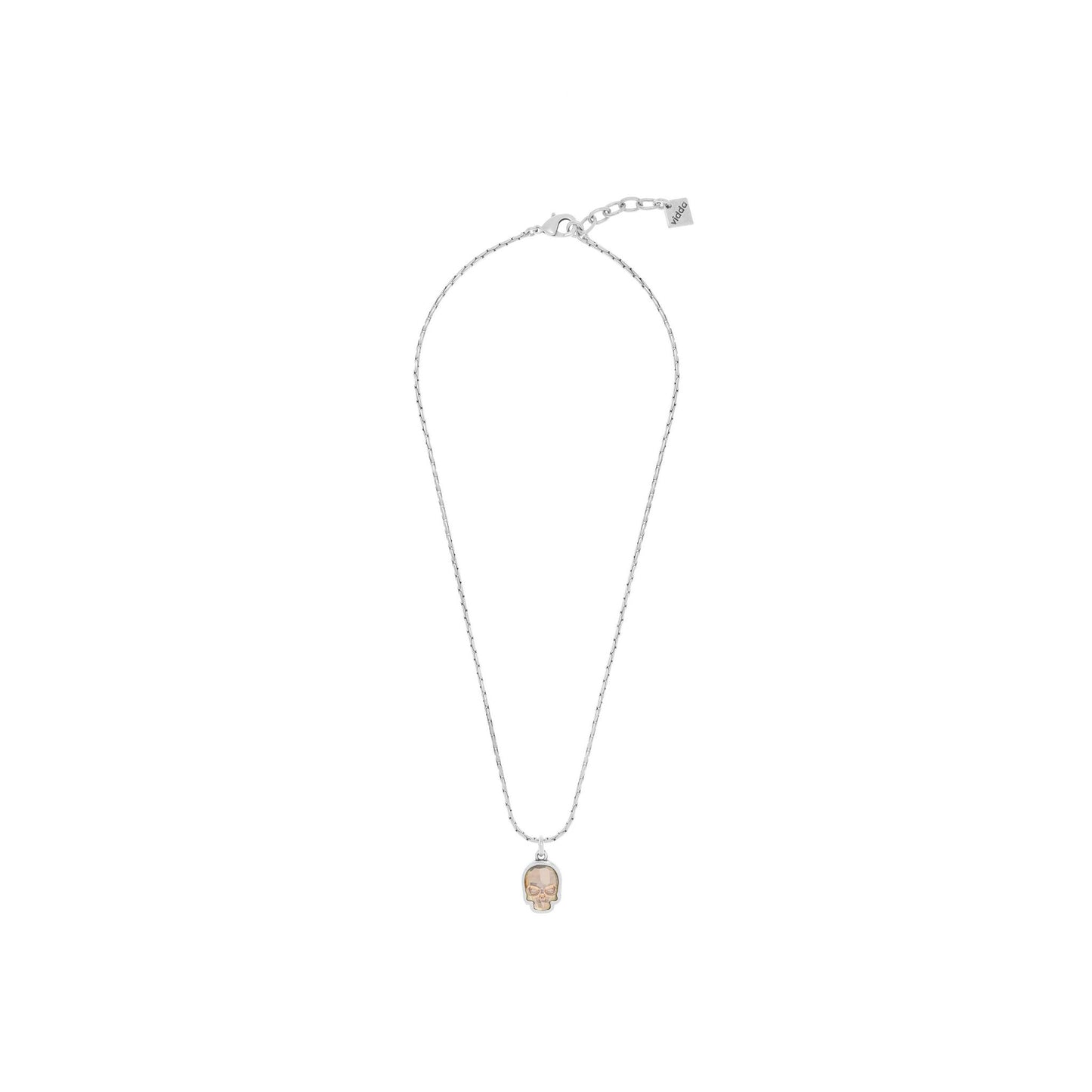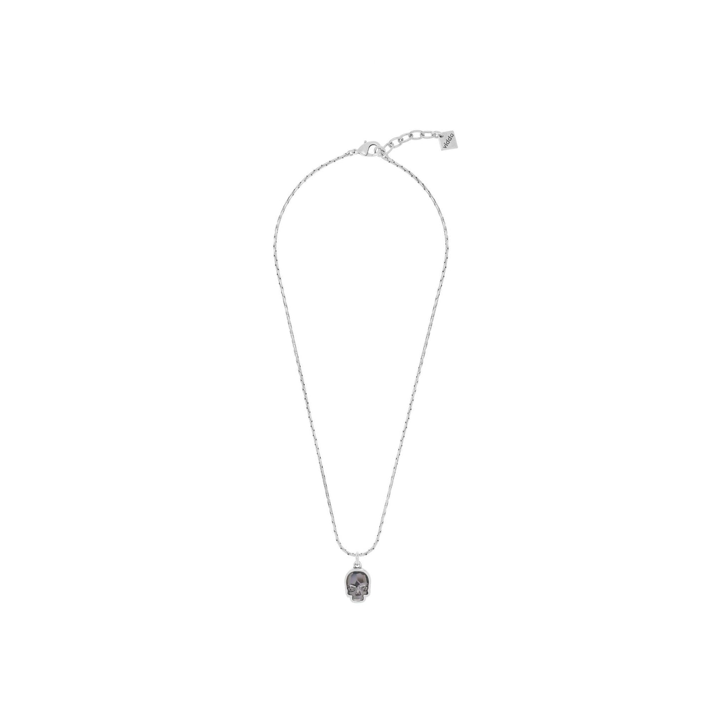 Collar de cadena de tipo avena con un pequeño colgante en forma de calavera con cristal Swarovski®.