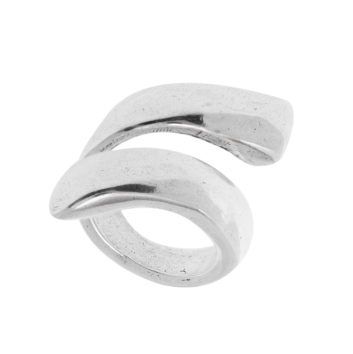 Anillo abierto de diseño curvado con extremos cuadrados.