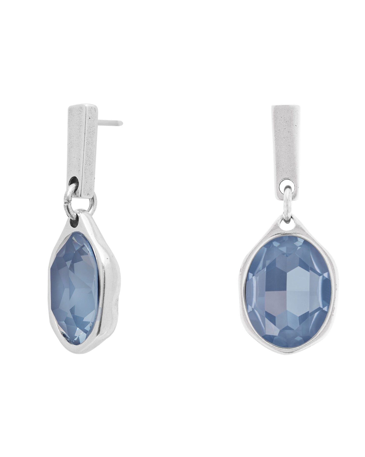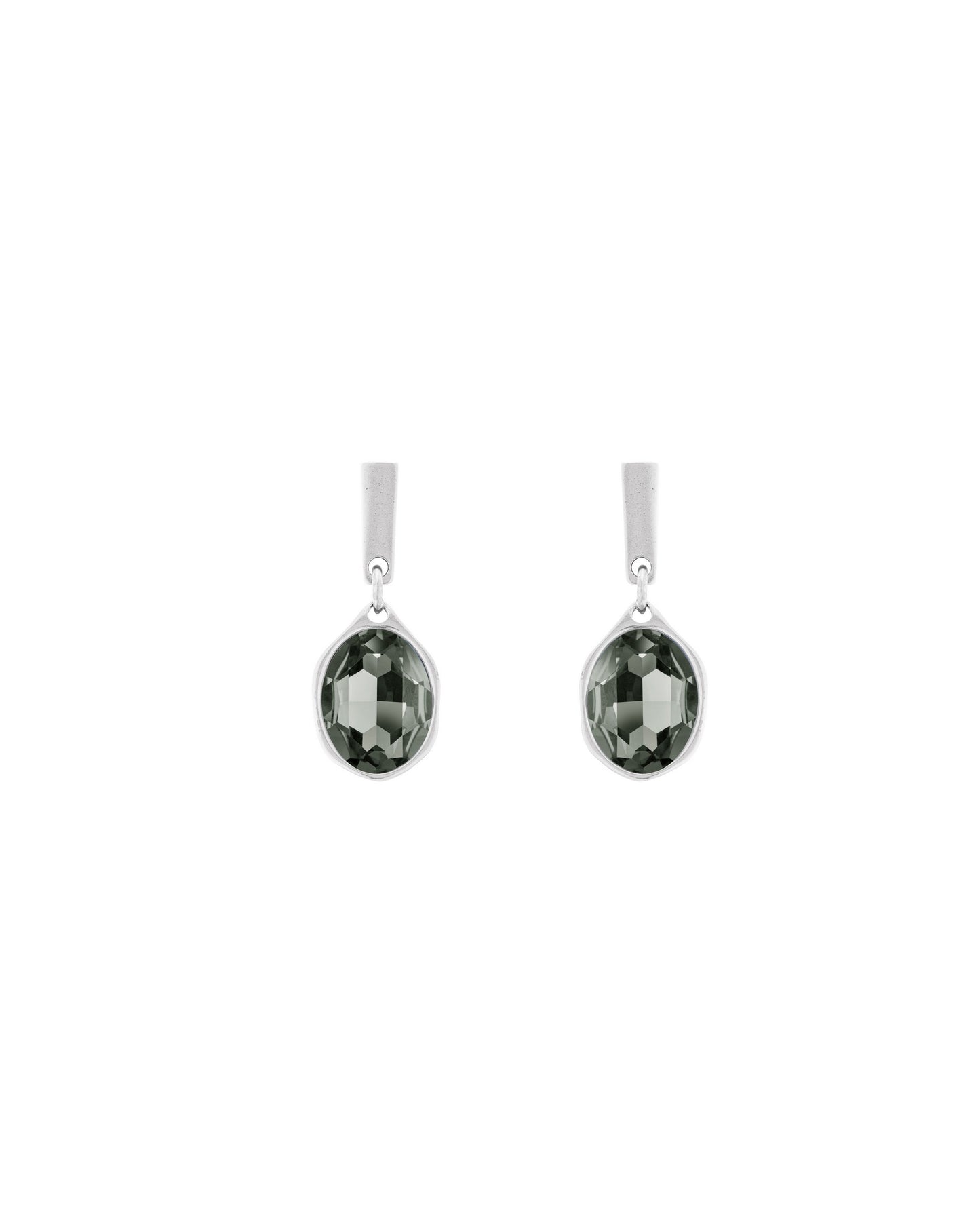 Stud earrings with hanging oval metal piece with Swarovski������ crystal.