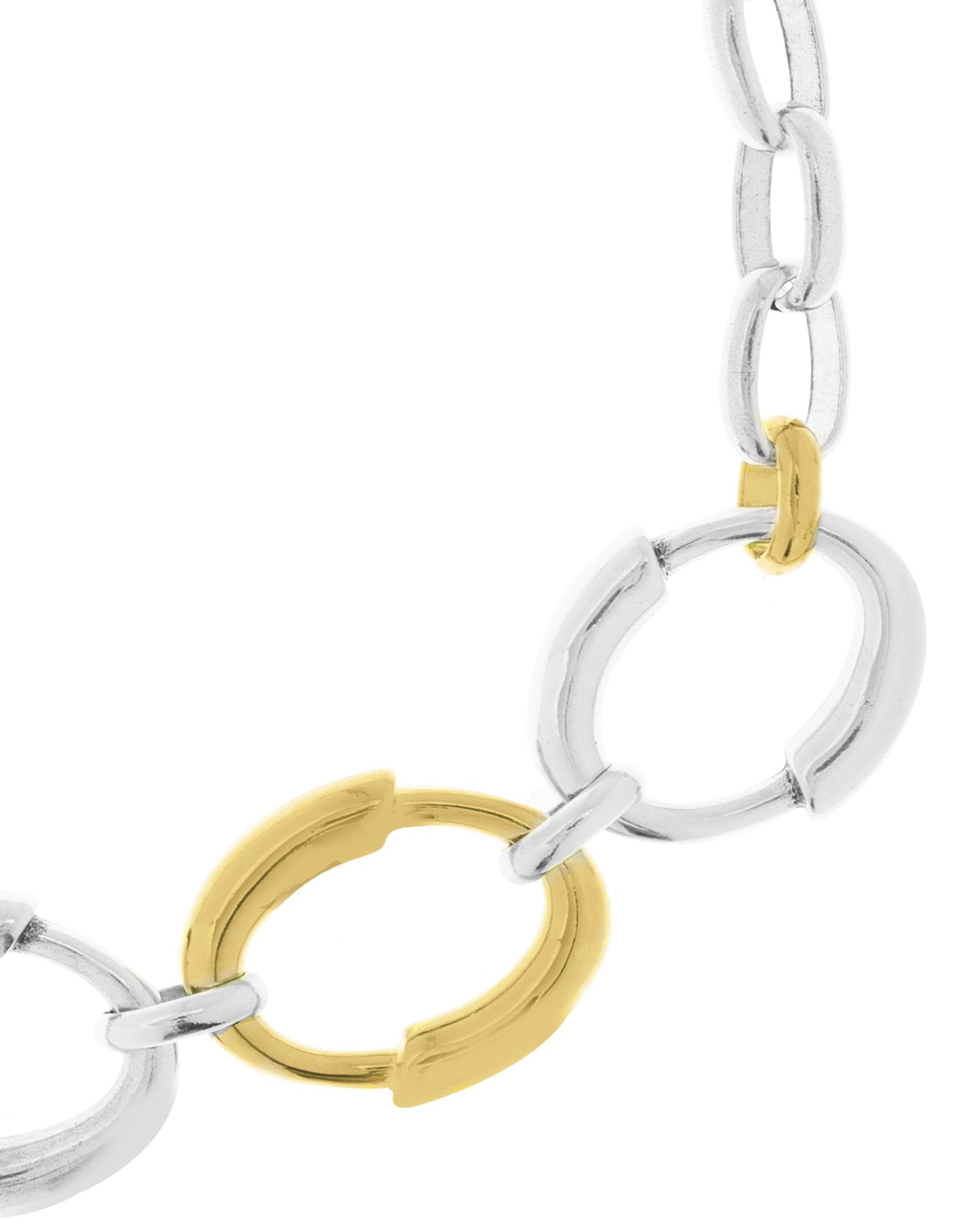 Short chain necklace featuring five circular links at the front, each formed by two curved tubular elements.