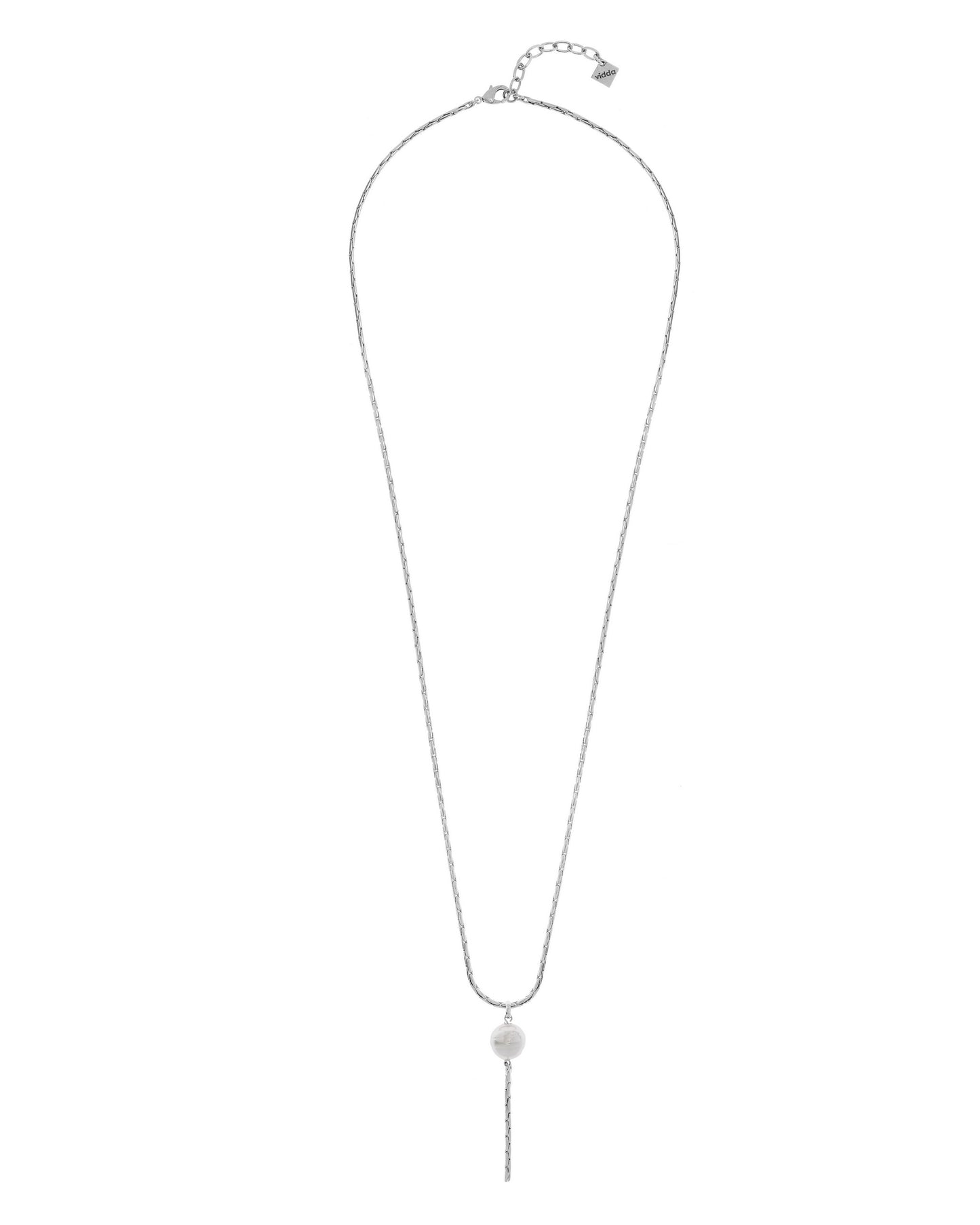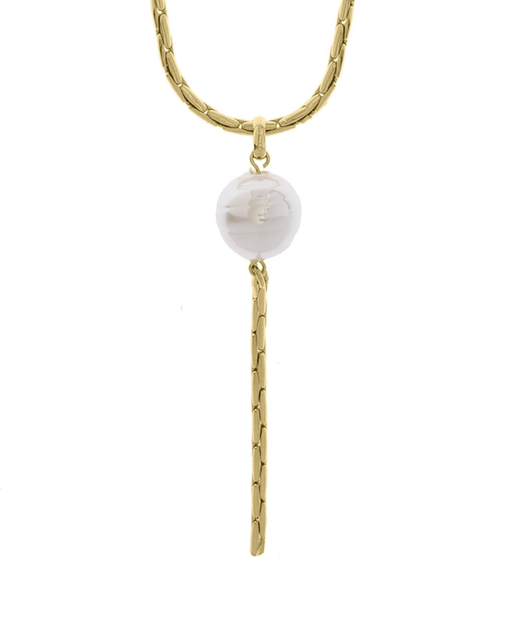 Long oat chain necklace with a hanging baroque pearl with a oat chain at the end.